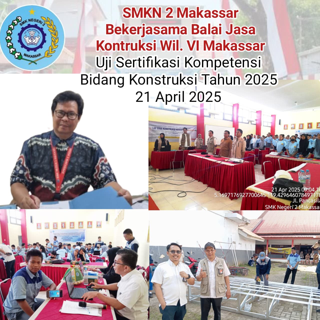 MAKASSAR,— KpkSigap.com – SMKN 2 Makassar sebanyak 125 Siswa mengikuti Uji Sertifikasi Kompetensi di bidang konstruksi (21/4/25), hasil GB kolaborasi dengan Balai Jasa Konstruksi Wilayah VI Makassar di bawah Kementerian Pekerjaan Umum dan Perumahan Rakyat (PUPR). Program yang telah berjalan sejak 2016 ini merupakan langkah strategis dalam mempersiapkan lulusan SMK yang siap kerja dengan bekal kompetensi dan sertifikasi resmi.