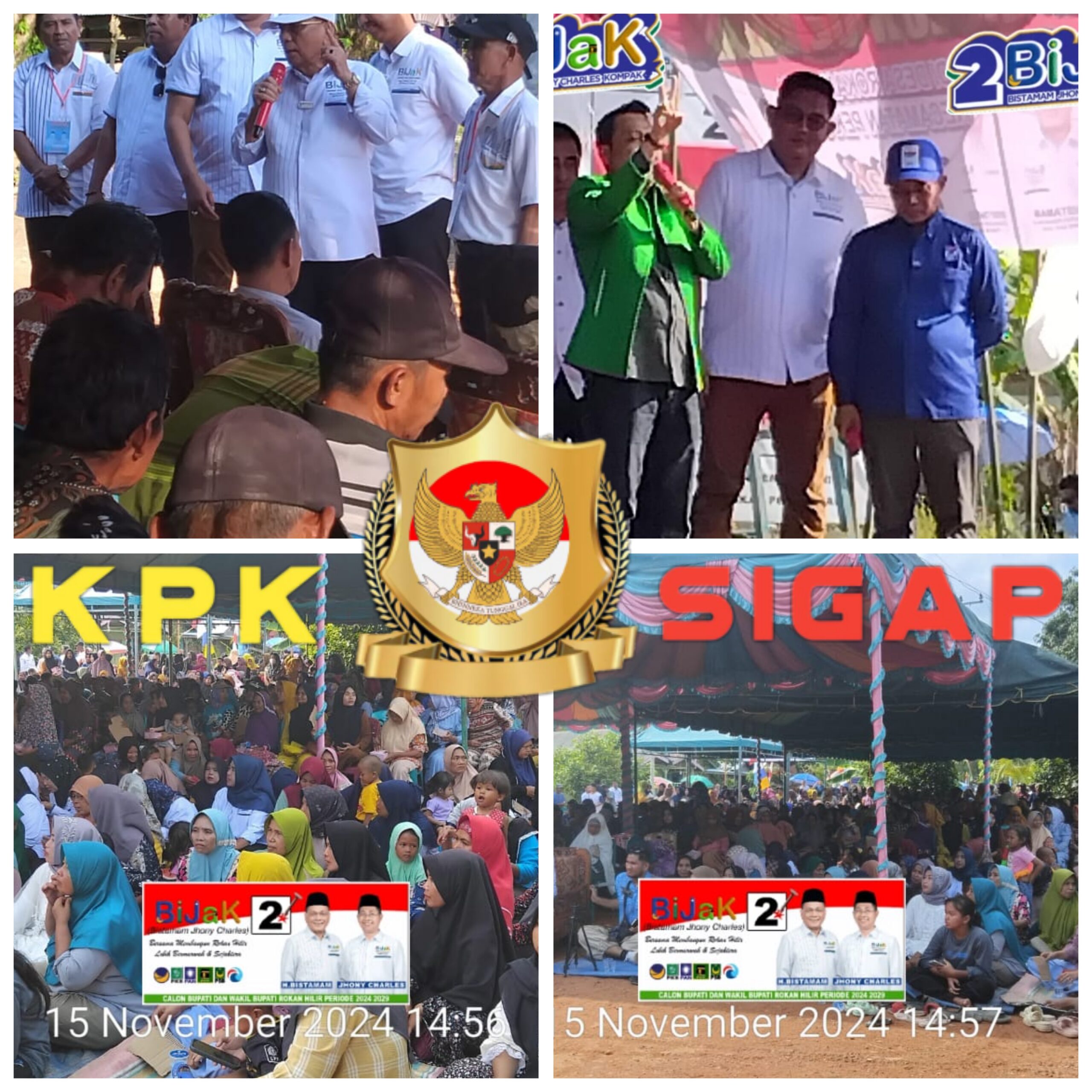 Rokan Hilir (Riau) kpksigap.com – Pasangan calon Bupati dan Wakil Bupati Rokan Hilir, H. Bistamam dan Jhony Charles, menggelar kampanye tatap muka yang penuh kehangatan dan antusiasme di kediaman Hadi Suprapto, Jl. Melati Dusun Jadi Mulyo RT/RW 002/002, Kepenghuluan Rokan Baru, Kecamatan Pekaitan. Dimulai sejak pukul 14.00 WIB, kampanye ini disambut ratusan warga yang antusias untuk mendengar langsung visi dan misi pasangan yang dikenal dengan semangat “bijak” tersebut.”Jum’at 15/11/2024.