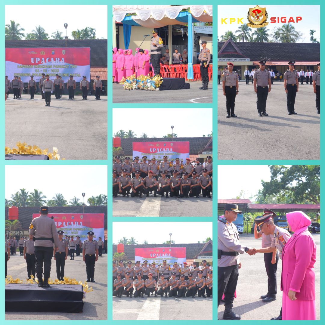 . Sebanyak 22 personel Polres Mandailing Natal (Madina) naik pangkat setingkat lebih tinggi mulai dari Bintara hingga Perwira Pertama (Pama), Kamis (2/1/2025).