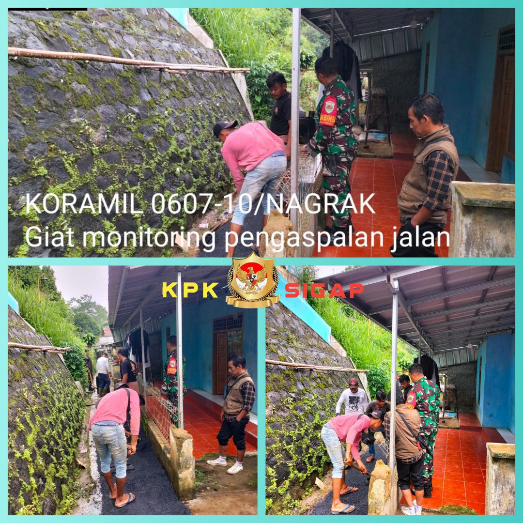 Babinsa koramil 0607-10 Nagrak serka Soepryono Selain pengamanan jalan,juga memberikan pendampingan kepada para pekerja proyek. Dia bertugas untuk memastikan bahwa proses pengaspalan berjalan dengan lancar dan sesuai dengan standar yang telah ditetapkan. Pendekatan yang kooperatif dan bantuan yang diberikan oleh Babinsa ini menjadi bagian penting dalam menjaga kualitas proyek tersebut.