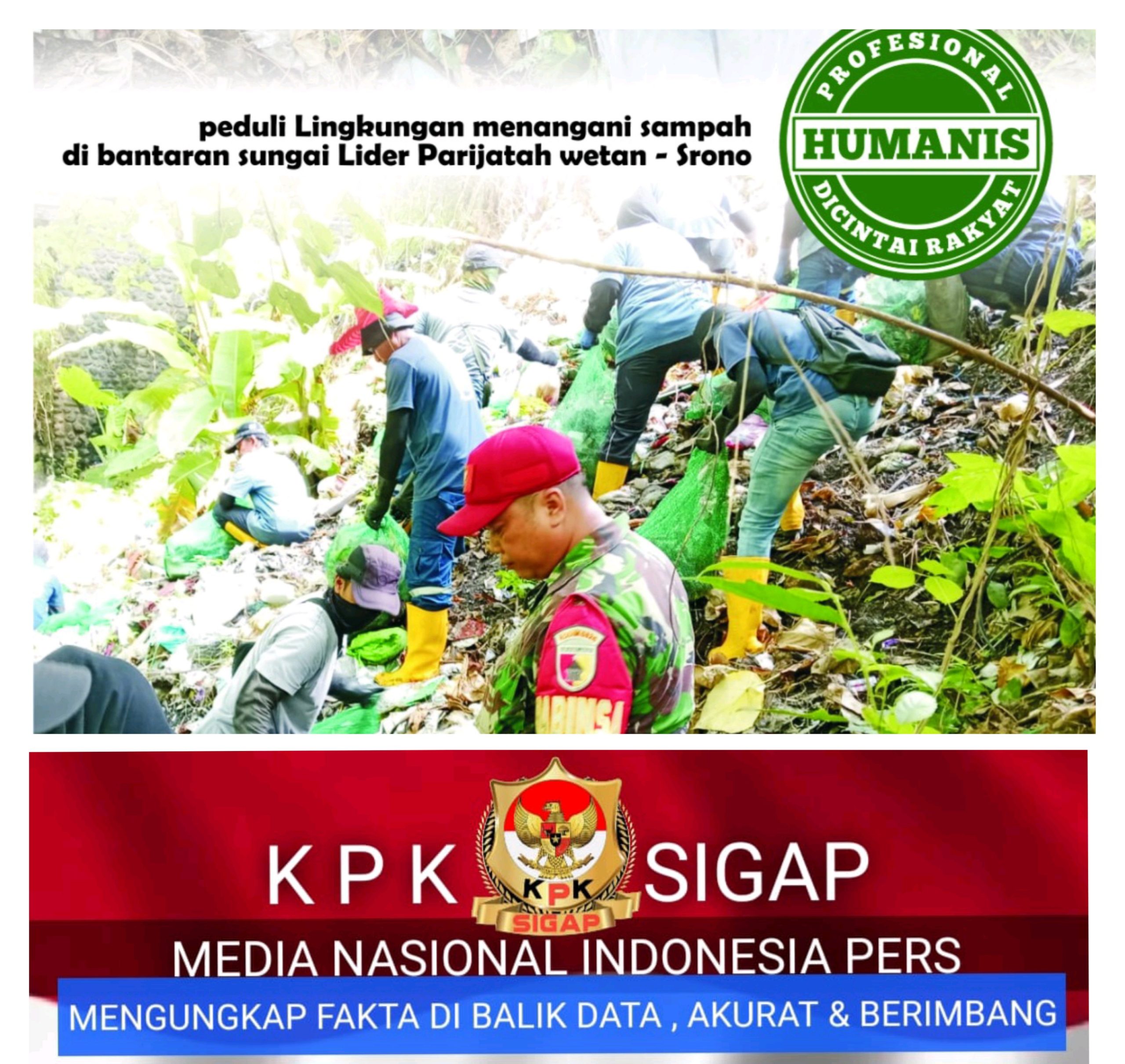 Babinsa parijatah wetan sertu irfan gunarjo bersama anggota koramil 0825-08/Srono hadir dalam kegiatan bakti sosial bersma masyarakat, Komunitas sungai watch bertajuk “kaliku resik lingkunganku nyaman” untuk membersihkan sampah organik dan non organik yang berserakan di bantaran sungai lider selain menimbulkan bau yang tidak sedak juga bepotensi mencemari lingkungan yang asri.