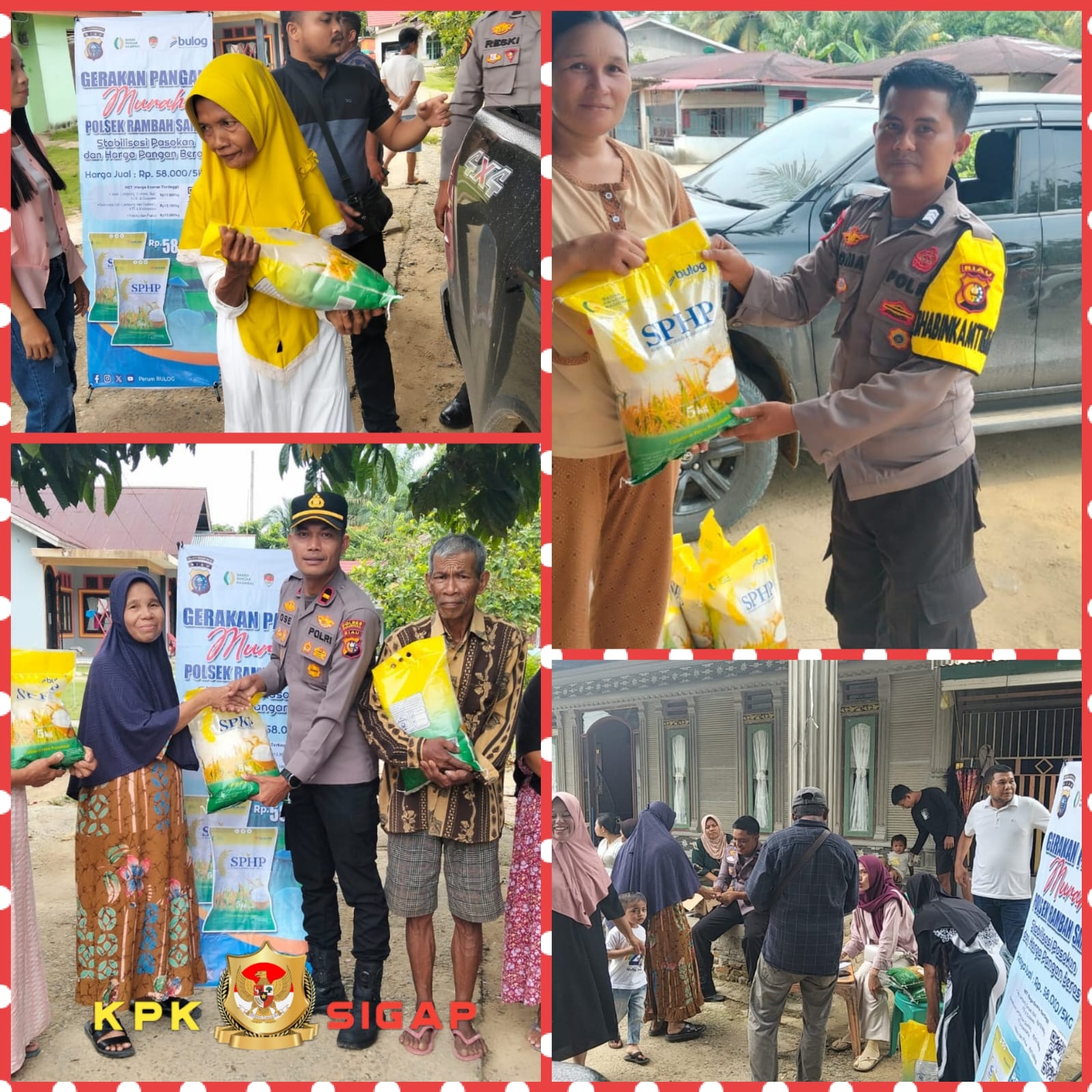 Polsek Rambah Samo dalam hal ini menyediakan 6,5 ton atau 1.300 sak beras yang dijual dengan harga Rp 58.000 per karung (5 kg).