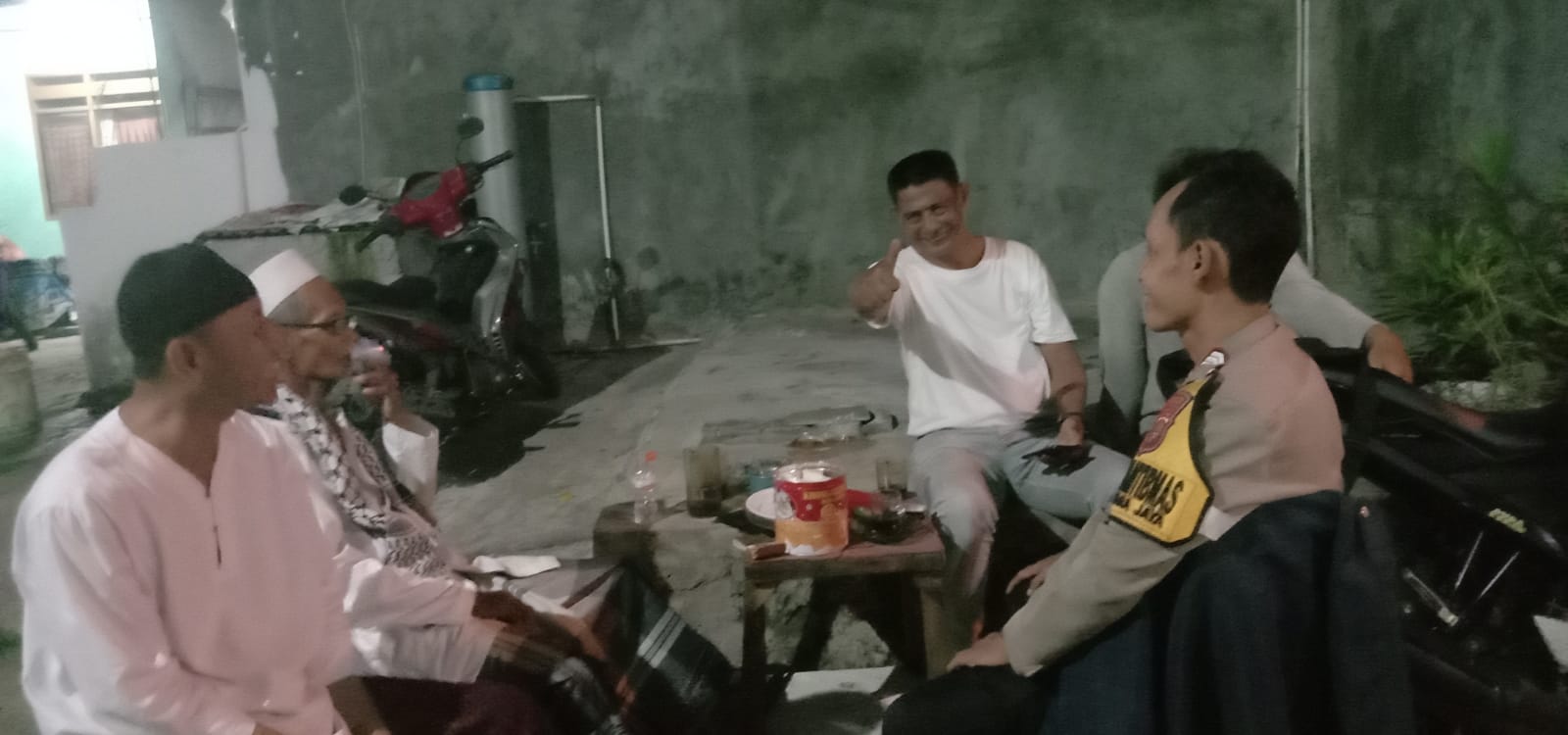 Bhabinkamtibmas bertemu tokoh agama Bapak Haji Murodih dan warga, dalam kesempatan tersebut membahas rencana membuat portal di setiap Gang, khusus dilingkungan RT.06 dengan hanya membuka satu akses keluar masuk untuk mempermudah pengawasan keamanan lingkungan