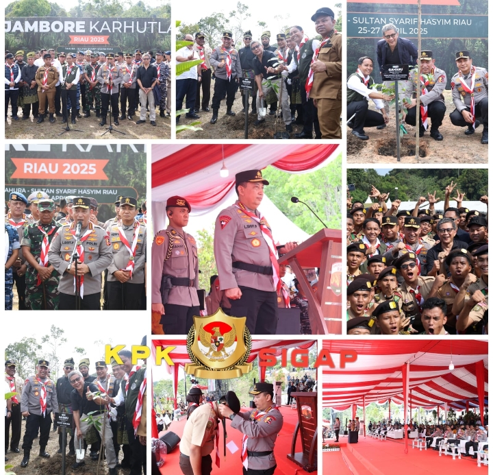 Kapolri Jenderal Listyo Sigit Prabowo membuka kegiatan Jambore Karhutla Riau 2025 di Bumi Perkemahan Tahura Sultan Syarif Hasyim, Siak, pada Jumat (25/4).