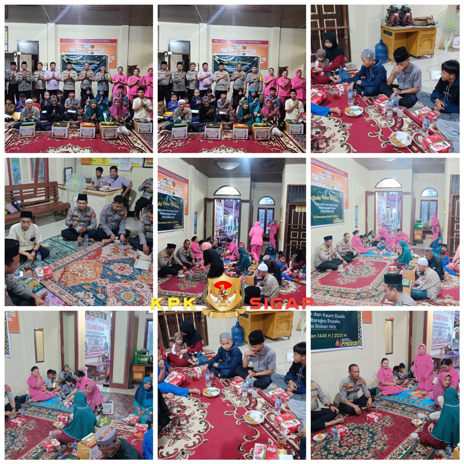 Turut hadir para Kanit Polsek Bangko Pusako dan Personel selain buka puasa bersama dengan Anak Yatim dan Kaum Dhuafa atau Warga kurang mampu ini, Kapolsek di Jajaran Polres Rohil ini juga