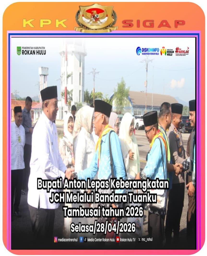 ROKAN HULU,kpksigap.com – Bupati Rokan Hulu Anton, ST, MM, didampingi Ketua TP PKK Rohul, dr. Yeni Dwi Putri, secara resmi melepas keberangkatan Jemaah Calon Haji (JCH) Kabupaten Rokan Hulu yang tergabung dalam Kloter 8. Pelepasan ini dilakukan di Bandara Tuanku Tambusai menuju Bandara Hang Nadim, Batam, pada Selasa (28/4/2026).
