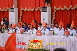Uniknya, dalam proses rapat tersebut, pimpinan rapat dan sejumlah peserta rapat menggunakan songkok atau tutup kepala tradisional Makassar “Passapu” dengan warna merah.