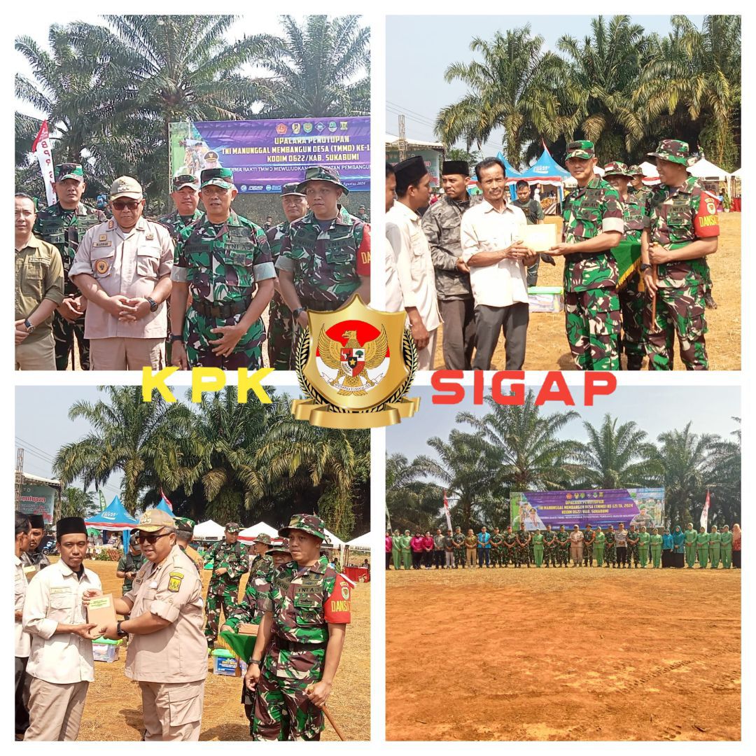 Cikidang- kpksigap.com. Pelaksanaan kegiatan TNI Manunggal Membangun Desa (TMMD) ke 121 tahun anggaran 2024 Kodim 0622/Kabupaten Sukabumi resmi berakhir. Hal itu pasca diserahkannya naskah hasil program TMMD ke 121 kepada Bupati Sukabumi H. Marwan Hamami dalam upacara penutupan yang dipimpin Kepala Staf Kodam III/Siliwangi Brigjen TNI Aminudin di Lapang Cipetir, Desa Cicareuh, Kecamatan Cikidang, kabupaten Sukabumi, Kamis, (22-8-2024) .