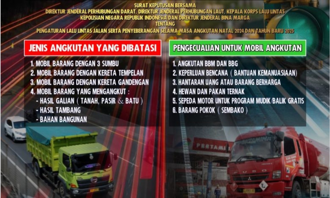 Polri melalui Korlantas bersama Ditjen Hubdar, Ditjen Hubla, dan Ditjen Bina Marga telah menetapkan SKB yang mengatur pembatasan operasional angkutan barang, penerapan rekayasa lalu lintas, sistem delaying, buffer zone, serta pemberhentian sementara pekerjaan proyek konstruksi. Langkah ini bertujuan mendukung Keamanan, Keselamatan, Ketertiban, dan Kelancaran Lalu Lintas (Kamseltibcarlantas) selama arus mudik dan balik.