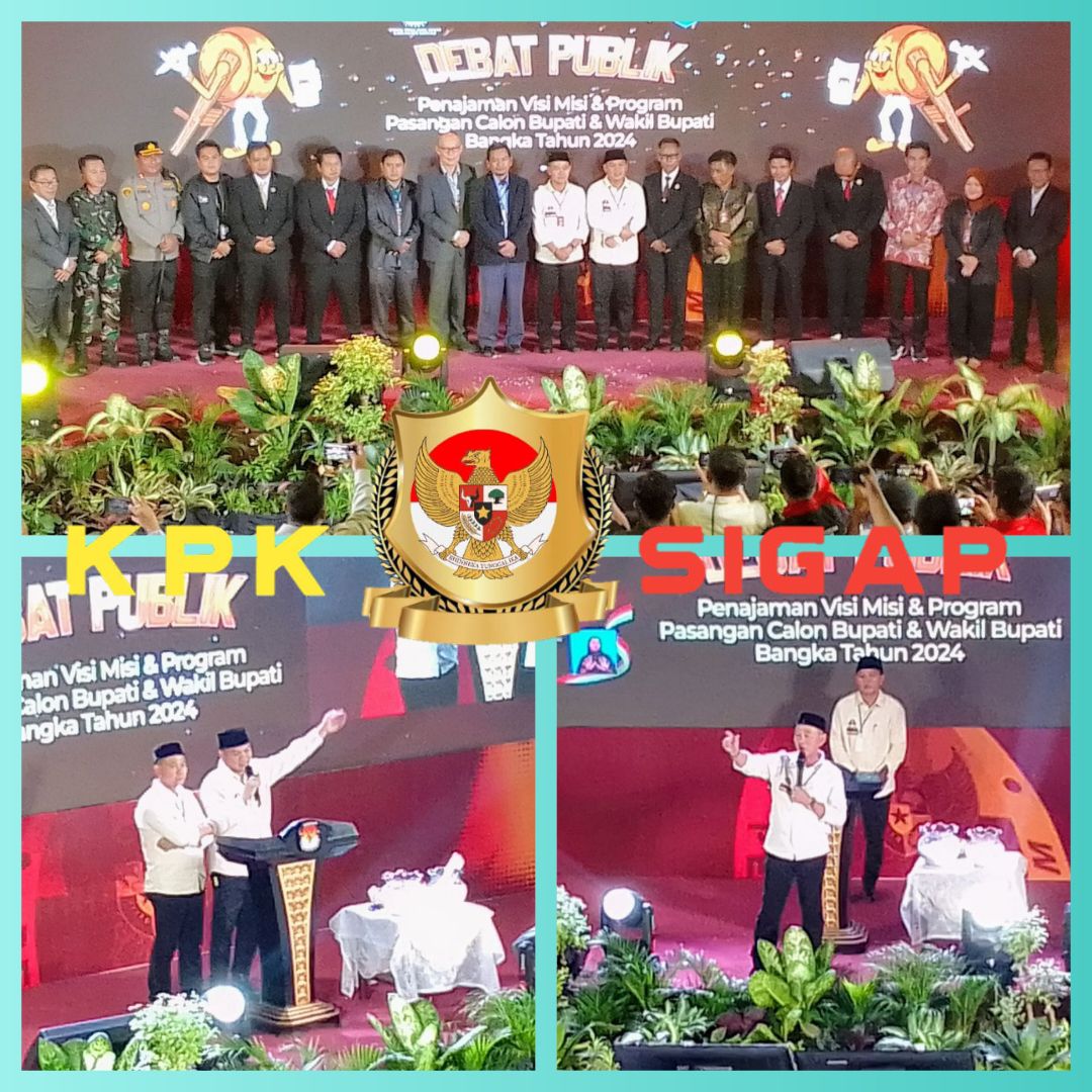 Kpksigap.com Bangka Debat’ Publik Penajaman Visi-Misi dan Program Pasangan, Calon Bupati Bangka dan Wakil Bupati Bangka Tahun 2024′ Ketua, (KPU) Provinsi Bangka Belitung Sinarto, beserta anggota Bawaslu, Provinsi Bangka Belitung, Pj. Bupati Bangka Dandim, 0413 Bangka, Kajari Bangka, Kapolres Bangka, Ketua Pengadilan Negeri, Sungailiat, Ketua Pengadilan Agama, Sungailiat Ketua dan Wakil Ketua DPRD, Bangka, Ketua dan Anggota Bawaslu, Bangka Anggota (KPU) Kabupaten, Bangka, pasangan calon Bupati dan, Wakil Bupati Bangka di Tanjung Pesona, Sungailiat Bangka Rabu Malam Kamis, (13/11/2024),