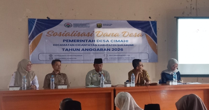 Kpksigap,com ​Sukabumi – Pemerintah Desa (Pemdes) Cimahi menggelar kegiatan Rapat Sosialisasi Dana Desa Tahun Anggaran 2026 bertempat di Aula Desa Cimahi pada Selasa (28/04/2026). Kegiatan ini bertujuan untuk mengedukasi kepada masyarakat tentang pemanfaatan, pengawasan, serta perubahan regulasi anggaran desa.