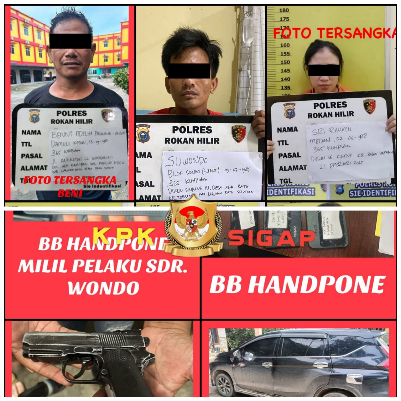 Keenam pelaku di amankan atas aksinya diduga merampok uang Korban atas nama Rukun Sinulingga (47 ) bersama istrinya Saten Maria Br Ginting ( 49) Hingga mengalami kerugian Rp 50 juta rupiah. Demikian dikatakan Kapolres Rohil AKBP Isa Imam Syahroni, S.I.K M.H. melalui Plh Kasi Humas Polres Rohil Ipda Dahri Iskandar Lubis membenarkan adanya Pengungkapan Pencurian Dengan Kekerasan (Curas) di BRILink di Wilayah Hukum Polres Rohil yang melibatkan para perampok bersenpi antar Provinsi tersebut.