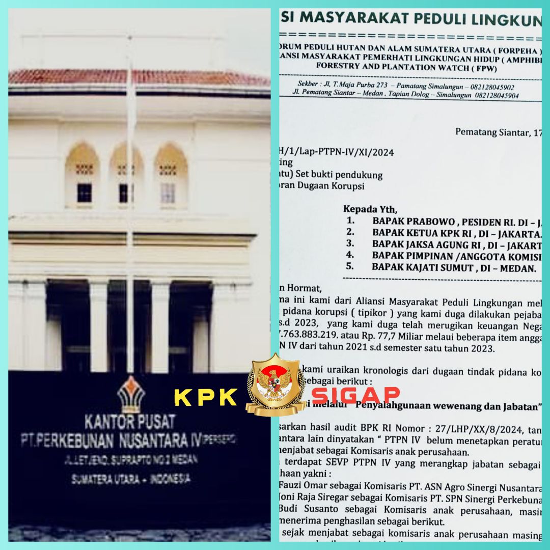 Kordinator Umum FPW Jan Rusdin Sinaga dalam penjelasan nya kepada awak Media ini 16/12 telah menyampaikan surat kepada Presiden Prabowo dan Ketua KPK dan Kejagung RI,DPR RI komisi III dan tembusan nya surat Nomor KLLH/1/lap-PTPN IV Medan