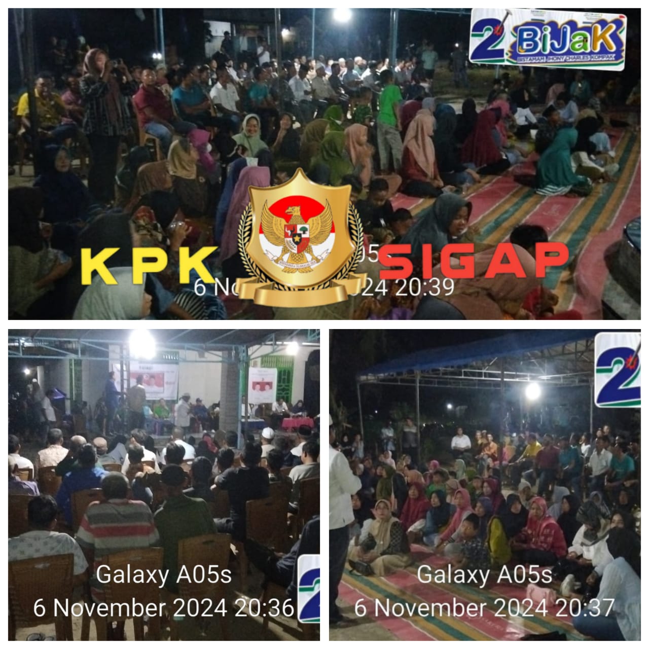 Rokan Hilir (Riau) kpksigap.com – Kampanye dialogis pasangan calon Bupati dan Wakil Bupati Rokan Hilir, H. Bistamam dan Jhony Charles mendapat sambutan hangat masyarakat Rokan Hilir Kali ini Paslon 02 ini mendapat sambutan hangat dari masyarakat Simpang Bandung RT/RW 001/004, Kepenghuluan Sungai Segajah Makmur, Kecamatan Kubu. Kegiatan yang dimulai pukul 20.00 WIB hingga 23.00 WIB ini berlangsung di rumah Suradi, dan dihadiri sekitar 700 orang warga setempat.