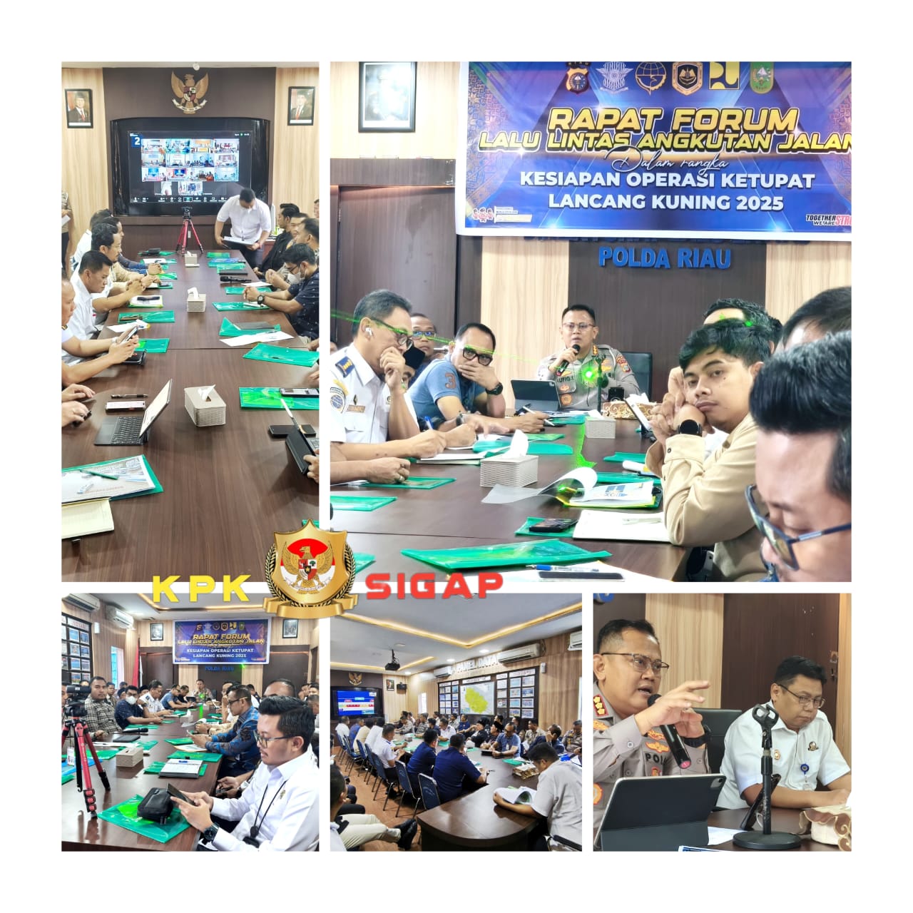 Menjelang pelaksanaan Operasi Ketupat 2025, Direktorat Lalu Lintas (Ditlantas) Polda Riau taja Forum Lalu Lintas Angkutan Jalan dalam rangka Operasi Ketupat Lancang Kuning 2025, rapat koordinasi guna memastikan kesiapan seluruh instansi yang terlibat dalam melayani arus mudik Lebaran Idul Fitri 1446H/2025 M.
