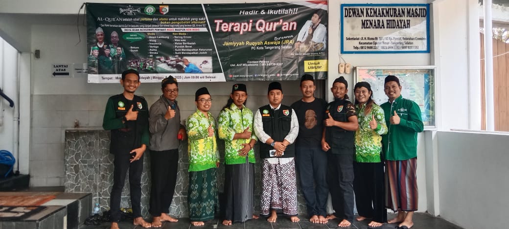TANGERANG SELATAN KPKsigap.com – Jam’iyyah Ruqyah Aswaja Nahdlatul Ulama ( JRA NU) Tangerang Selatan, Menggelar Kegiatan sosial ruqiyah masal terapi Al Qur’an dan Bekam sebagai media pengobatan non medis di Masjid Menara Hidayah Cireundeu, Ciputat Timur Minggu, ( 06/07/25).