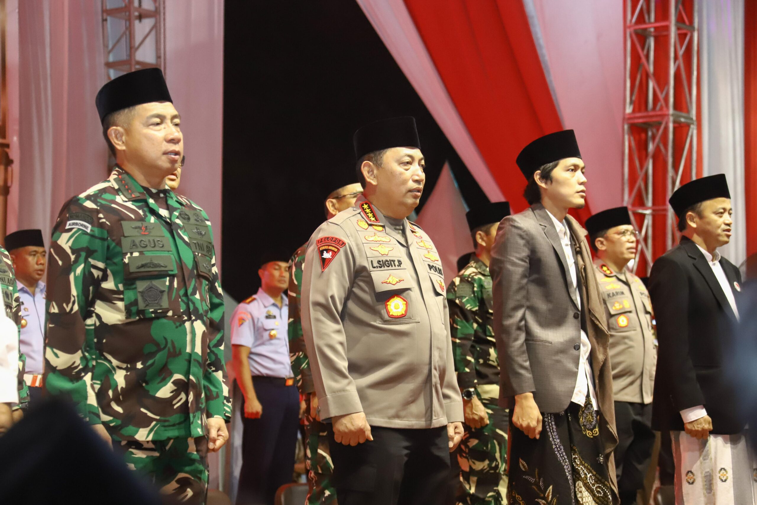 Hadir dalam acara tersebut Kapolri Jenderal Pol. Listyo Sigit Prabowo, Panglima TNI Jenderal TNI Agus Subiyanto, Penjabat Gubernur Jawa Tengah Nana Sudjana, serta Forkopimda Jawa Tengah dan Gus Iqdam dari Majelis Ta’lim Sabilu Taubah turut memberikan ceramah kebangsaan, menyusul doa yang dipimpin oleh tokoh lintas agama sebagai simbol harmoni dalam keberagaman.