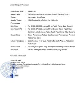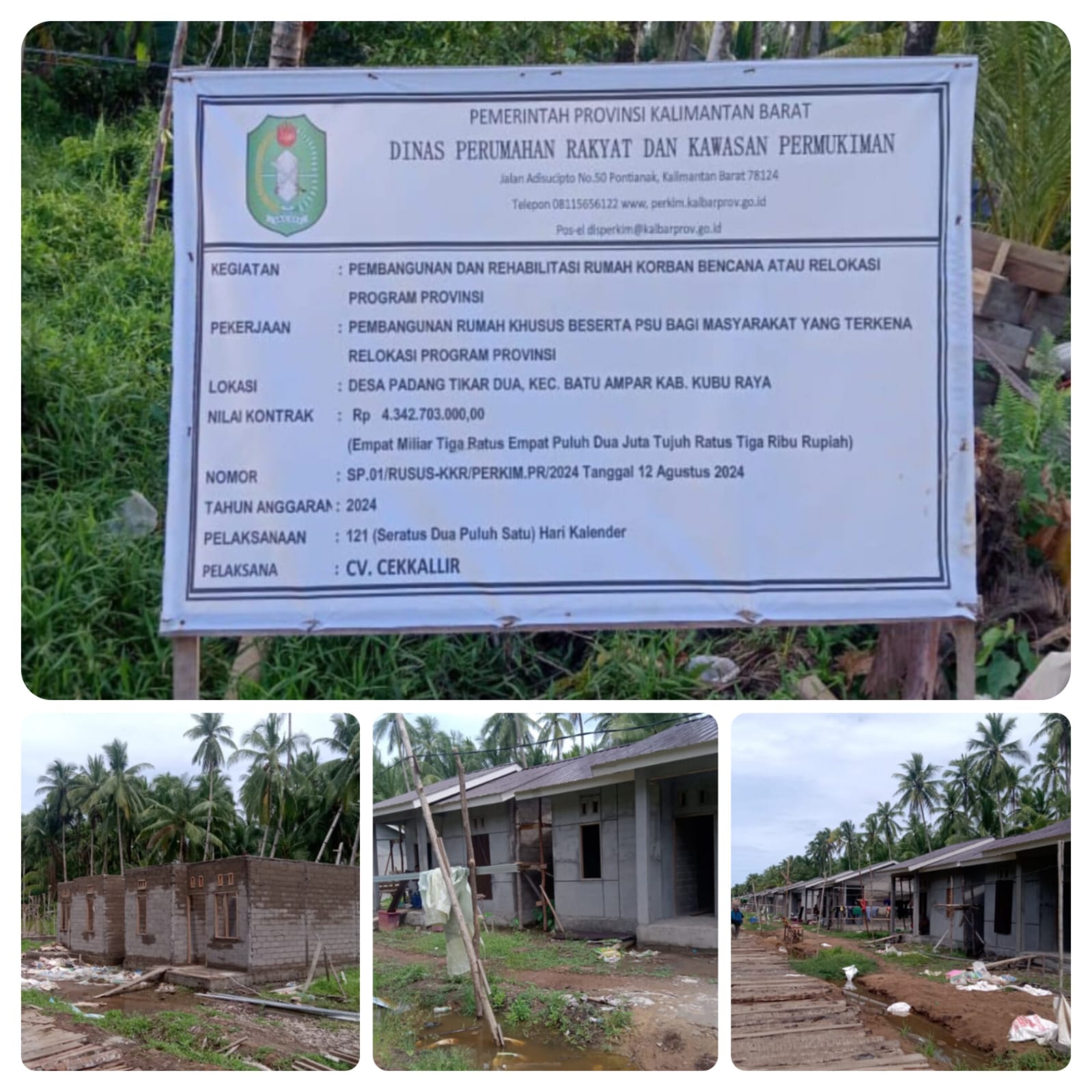 Pontianak,kpksigap.com – 14 Desember 2024 – Kalimantan Barat Pembangunan sebanyak 47 unit Rumah Khusus di Desa Padang Tikar 2, Kecamatan Batu Ampar, Kabupaten Kubu Raya dengan anggaran senilai Rp 5,7 miliar, diduga bermasalah. Proyek yang berasal dari APBD Provinsi Kalimantan Barat melalui Program Dinas Perumahan Rakyat dan Kawasan Permukiman (Perkim) ini mulai menunjukkan tanda-tanda keterlambatan dan berpotensi mangkrak.