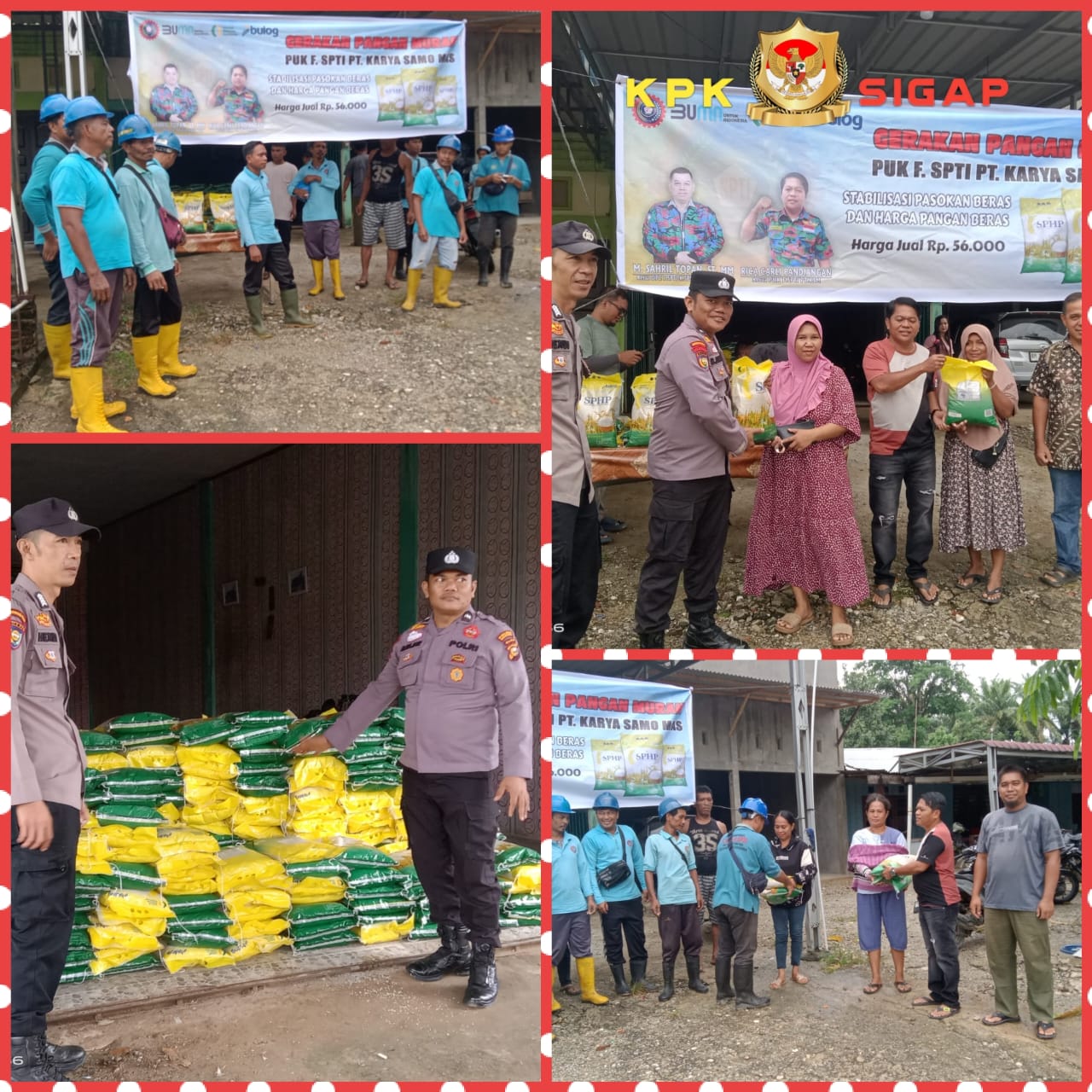 Rambah Samo–Gelar pasar pangan murah yang dilakukan oleh Ketua PUK F.SPTI PT. Karya Samo Mas (KSM), Rica Carli Pandiangan, yang berlangsung, minggu (28/09/2025), bertempat di depan kediaman dirinya di Desa Teluk Aur, Kecamatan Rambah Samo, Kabupaten Rokan Hulu. Dalam pasar pangan murah ini, dijual beras jenis SPHP dengan harga miring, yakni Rp. 56.000/5 Kg.