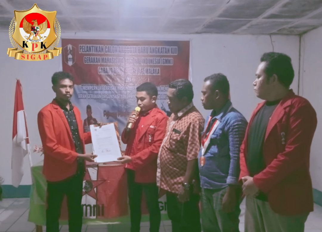 MALAKA_ kpksigap.com Ketua Dewan Pimpinan Daerah Gerakan Mahasiswa Nasional Indonesia (DPD GMNI) Nusa Tenggara Timur, Marianus Krisanto Haukilo, secara resmi menyerahkan Surat Keputusan (SK) Dewan Pimpinan Cabang (DPC) Caretaker GMNI Malaka, Sabtu, 11 Januari 2025.