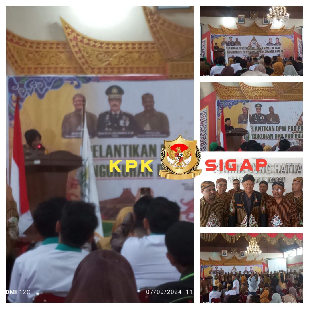 BUKITTINGGI— kpksigap.com. Gubernur Sumatera Barat H. Mahyeldi Ansharullah hadir pada pelantikan pengurus DPW PKB Pujakesuma Sumatera Barat, Sabtu (7/9/2024), di Istana Bung Hatta, Bukittinggi.