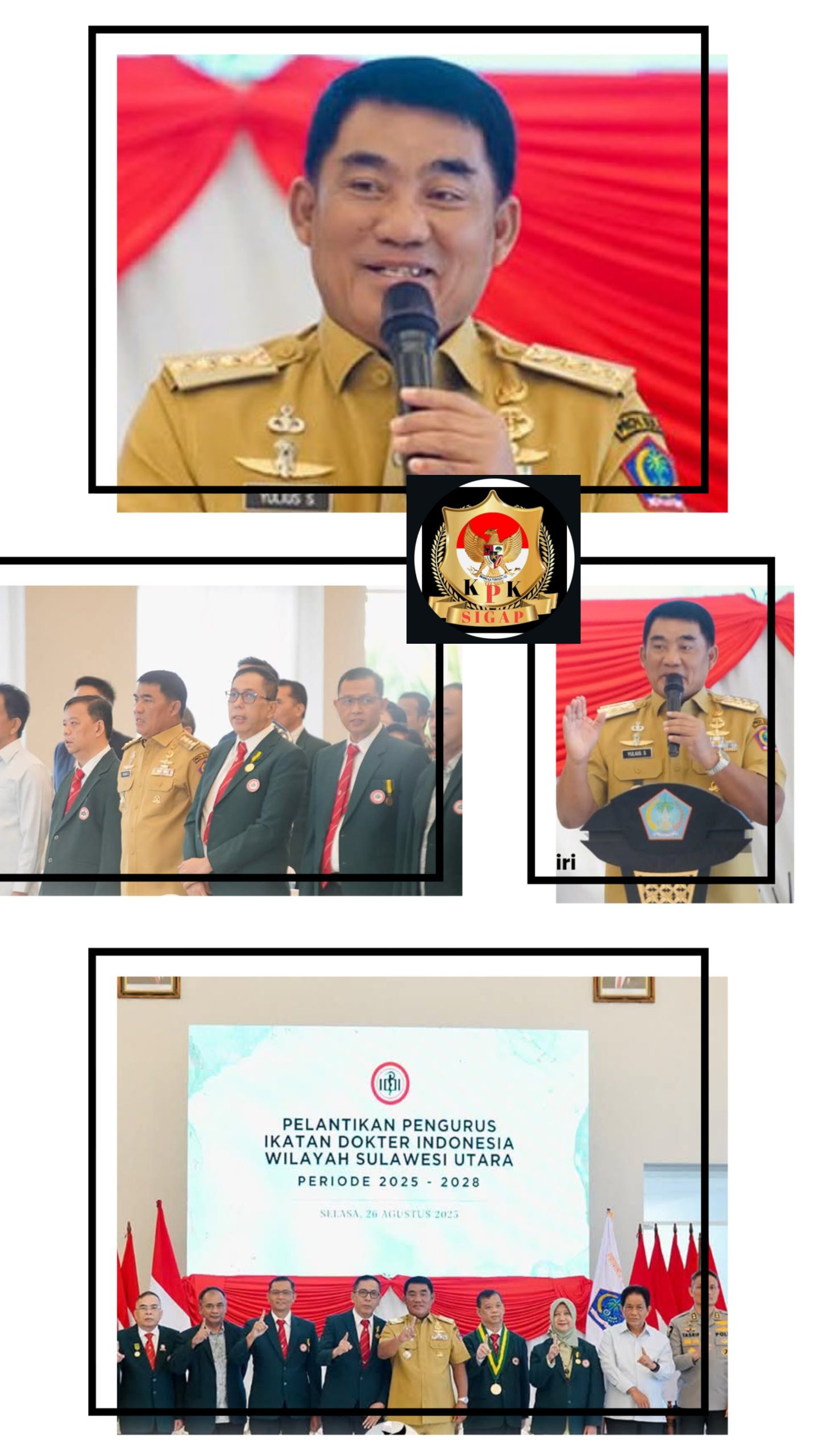 Gubernur Sulawesi Utara, Mayjen TNI (Purn) Yulius Selvanus Komaling, SE (YSK), menghadiri Pelantikan Pengurus Ikatan Dokter Indonesia (IDI) Wilayah Sulawesi Utara periode 2025–2028 yang digelar di Manado, Selasa (26/8/2025).
