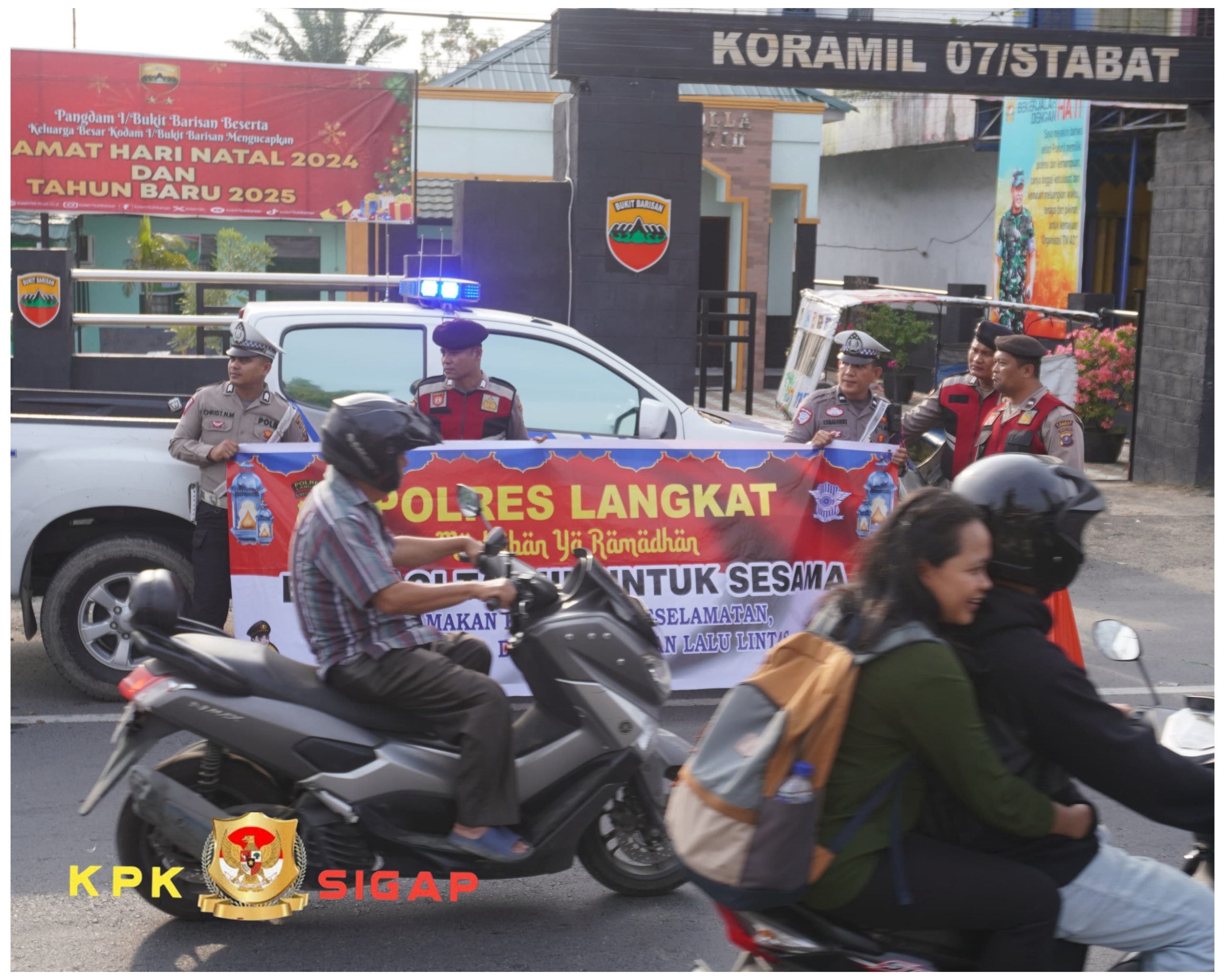 Satuan Lalulintas dan Sat Patroli Samapta Polres Langkat selain melaksanakan tugas pokok Kepolisian, disaat itu mengambil bagian ritual melaksanakan kepedulian dan kebersamaan dibulan suci Ramadhan membagikan Takjil berupa makanan ringan untuk berbuka puasa.