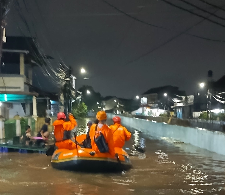 “Melaporkan situasi di Komplek Maharta, terjadi genangan air setinggi kurang lebih 30cm hingga 70 cm yang mengakibatkan jalan di Perumahan Maharta dan Pondok Kacang Prima tergenang, “Ungkap Ndan Sholeh Bhabinkamtibmas  Pondok Aren.