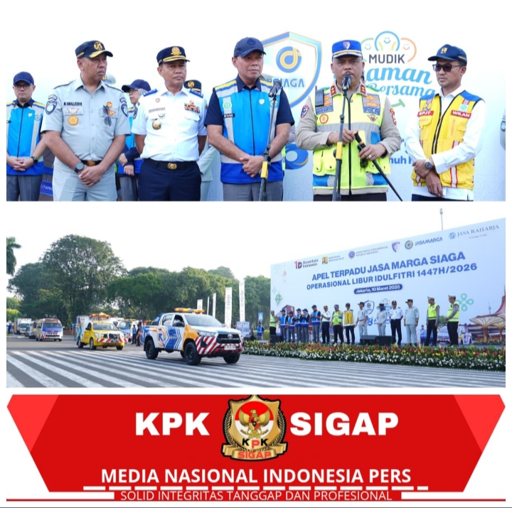 JAKARTA – Menjelang perayaan Idul Fitri 1447 H, semangat kolaborasi lintas sektoral semakin diperkuat. Kepala Korps Lalu Lintas (Kakorlantas) Polri, Irjen Pol Drs. Agus Suryonugroho, S.H., M.Hum., menghadiri Apel Terpadu Jasa Marga Siaga Operasional Libur Hari Raya Idul Fitri 2026 yang digelar di Taman Mini Indonesia Indah (TMII), Selasa (10/03/2026).