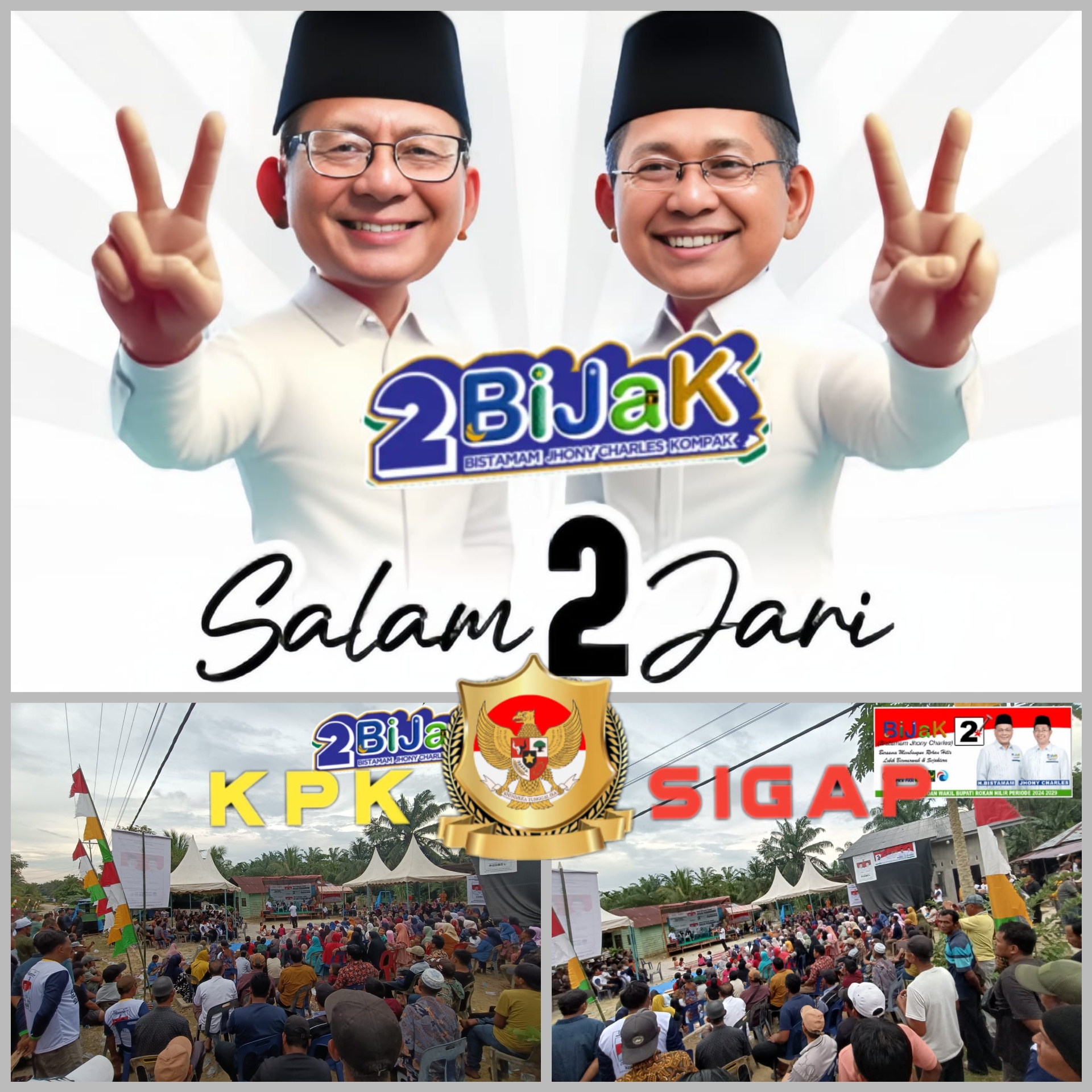 Pasangan calon Bupati dan Wakil Bupati Rokan Hilir, H. Bistamam dan Jhony Charles, menggelar kampanye tatap muka perdana mereka di rumah Suyanto, Dusun Pematang Kunyit, Kepenghuluan Bangko Permata, Kecamatan Bangko Pusako. Acara ini berlangsung dari pukul 15.00 hingga 18.00 WIB, dengan dihadiri sekitar 700 warga setempat yang antusias mendengarkan visi dan misi pasangan calon.”Rabu 13/11/2024.