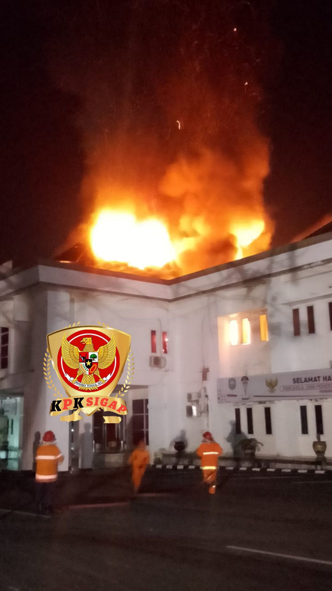 Menurut saksi mata di lokasi, api mulai terlihat sekitar pukul 21.00 WIB dan dengan cepat membesar, menyebar ke bagian lain dari kantor tersebut.