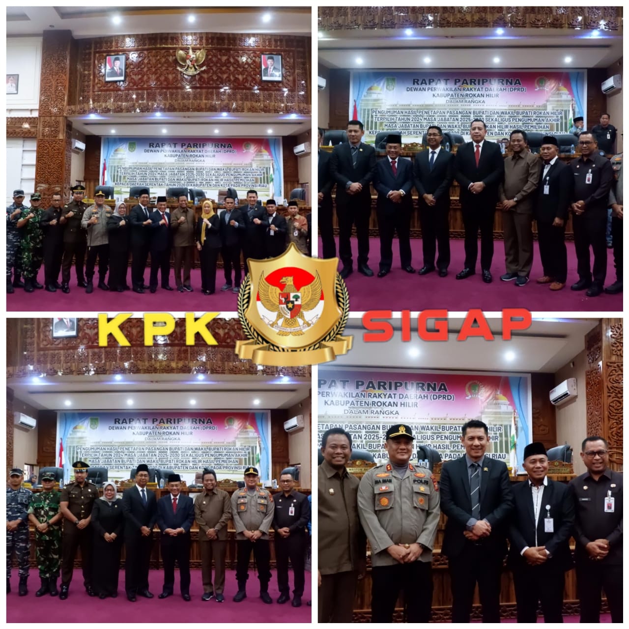 Kapolres Rohil AKBP Isa Imam Syahroni,S.I.K M.H. menghadiri rapat Paripurna Paripurna penetapan pasangan Bupati dan Wakil Bupati Kab. Rohil tahun 2024 masa Jabatan 2025 – 2030, serta pengumuman masa akhir jabatan Bupati dan Wakil Bupati Kabupaten Rohil Hasil Pemilihan Tahun 2020, oleh DPRD Kabupaten Rohil. Jum’at 07 Februari 2025, Pukul 16:30 WIB.