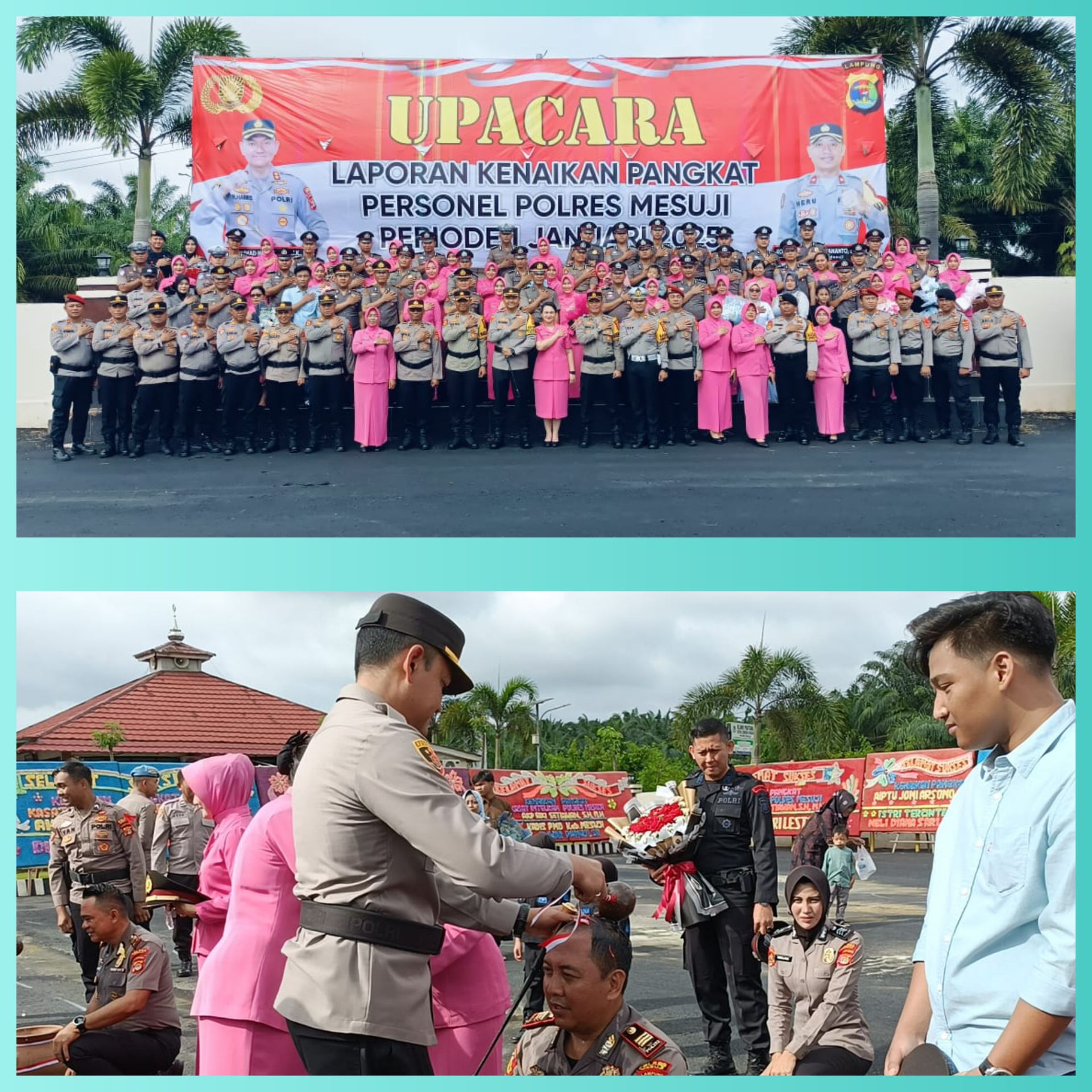 Upacara dipimpin langsung oleh Kapolres Mesuji AKBP Muhammad Harris S.H, S.Ik, M.Ik dengan di ikuti oleh seluruh PJU Polres Mesuji dan Personil Polres Mesuji serta Personil yang naik pangkat.