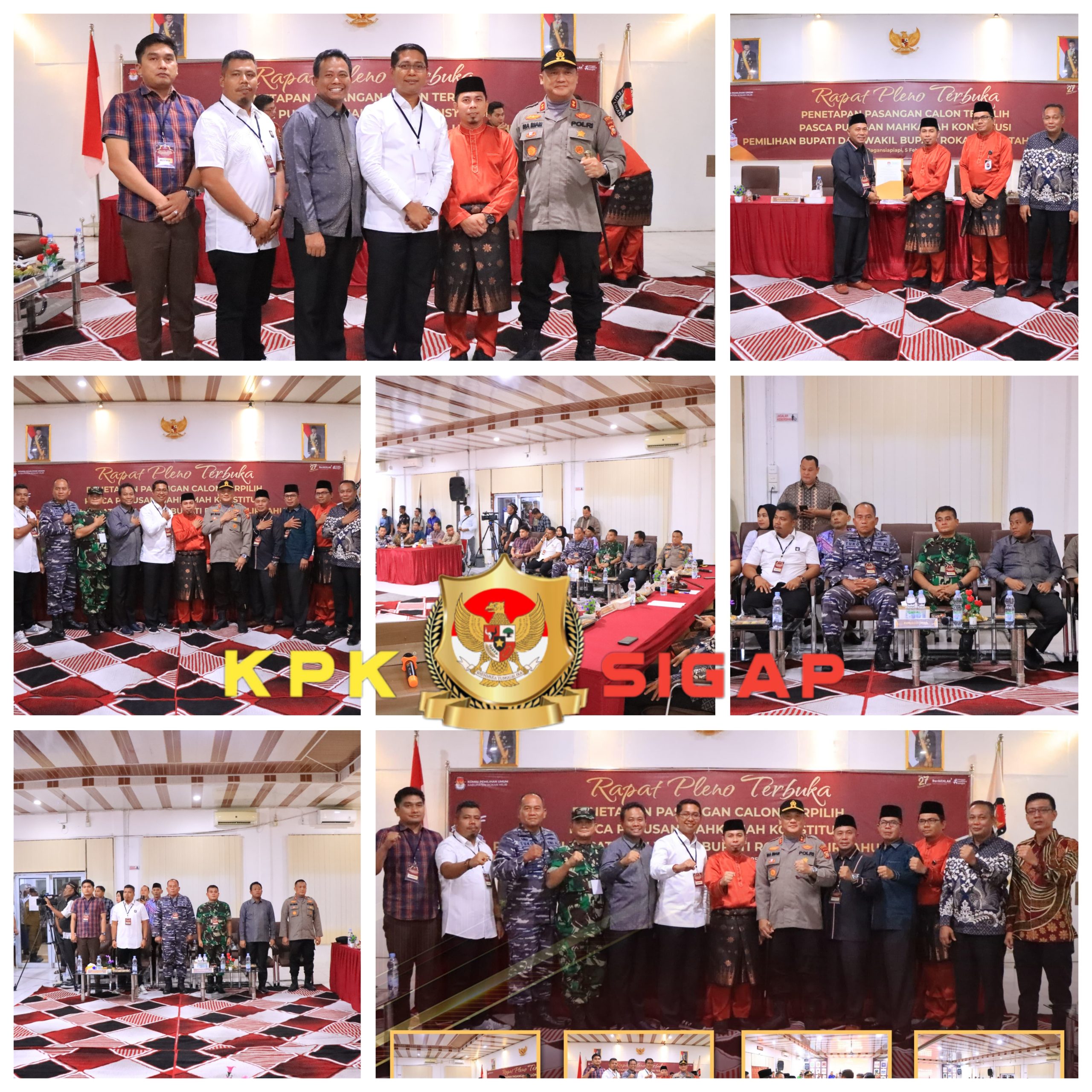 Kapolres Rohil AKBP Isa Imam Syahroni, S.I.K M.H. menghadiri Rapat Pleno Terbuka Penetapan Pasangan Calon Bupati dan Wakil Bupati Terpilih Kabupaten Rohil, hasil Pemilihan Kepala Daerah ( Pilkada) Tahun 2024, yang diadakan bertempat di Aula Media Center Kantor KPU Kabupaten Rohil. Rabu 05 Februari 2025, Pukul 21.00 WIB.