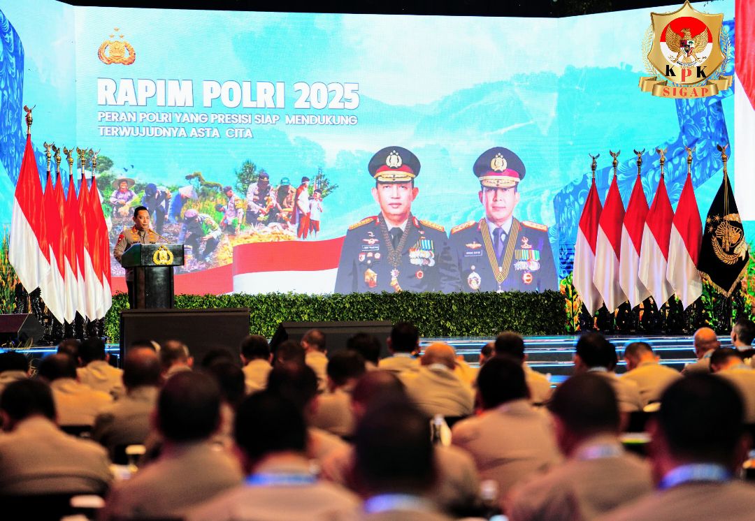 Dalam Rapat Pimpinan (Rapim) Polri Tahun 2025, Kapolri Jenderal Polisi Listyo Sigit Prabowo menegaskan pentingnya ketulusan, kerja keras, serta sinergi dalam menjalankan tugas kepolisian. Kapolri menyampaikan apresiasi kepada seluruh jajaran yang terus berkomitmen dalam memberikan perlindungan, pengayoman, dan pelayanan terbaik kepada masyarakat.