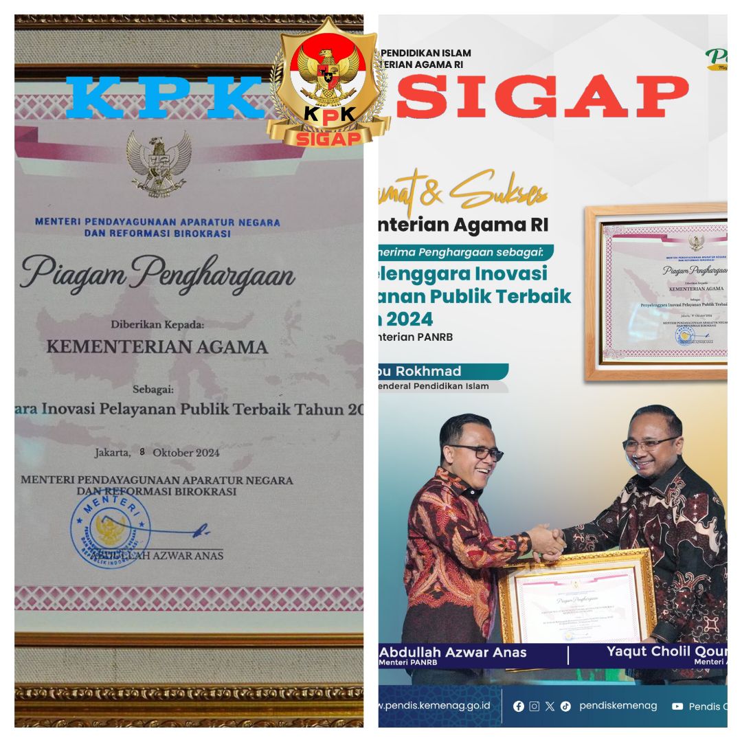 Kementerian Agama (Kemenag) meraih penghargaan sebagai Penyelenggara Inovasi Pelayanan Publik Terbaik Tahun 2024 dari Kementerian Pendayagunaan Aparatur Negara dan Reformasi Birokrasi (Kementerian PANRB).