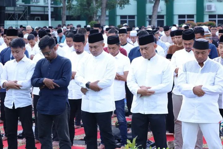 Pangdam I/Bukit Barisan, Mayjen TNI Rio Firdianto bersama Ketua Persit Kartika Chandra Kirana PD I/Bukit Barisan, Ny. Galuh Rio Firdianto melaksanakan Sholat Idul Adha 1446 Hijriah/2025 Masehi di Makodam I/BB, pada Jumat (06/06/2025). Kegiatan Ibadah ini turut diikuti oleh Prajurit, PNS Kodam I/BB, serta Masyarakat sekitar Makodam I/BB.