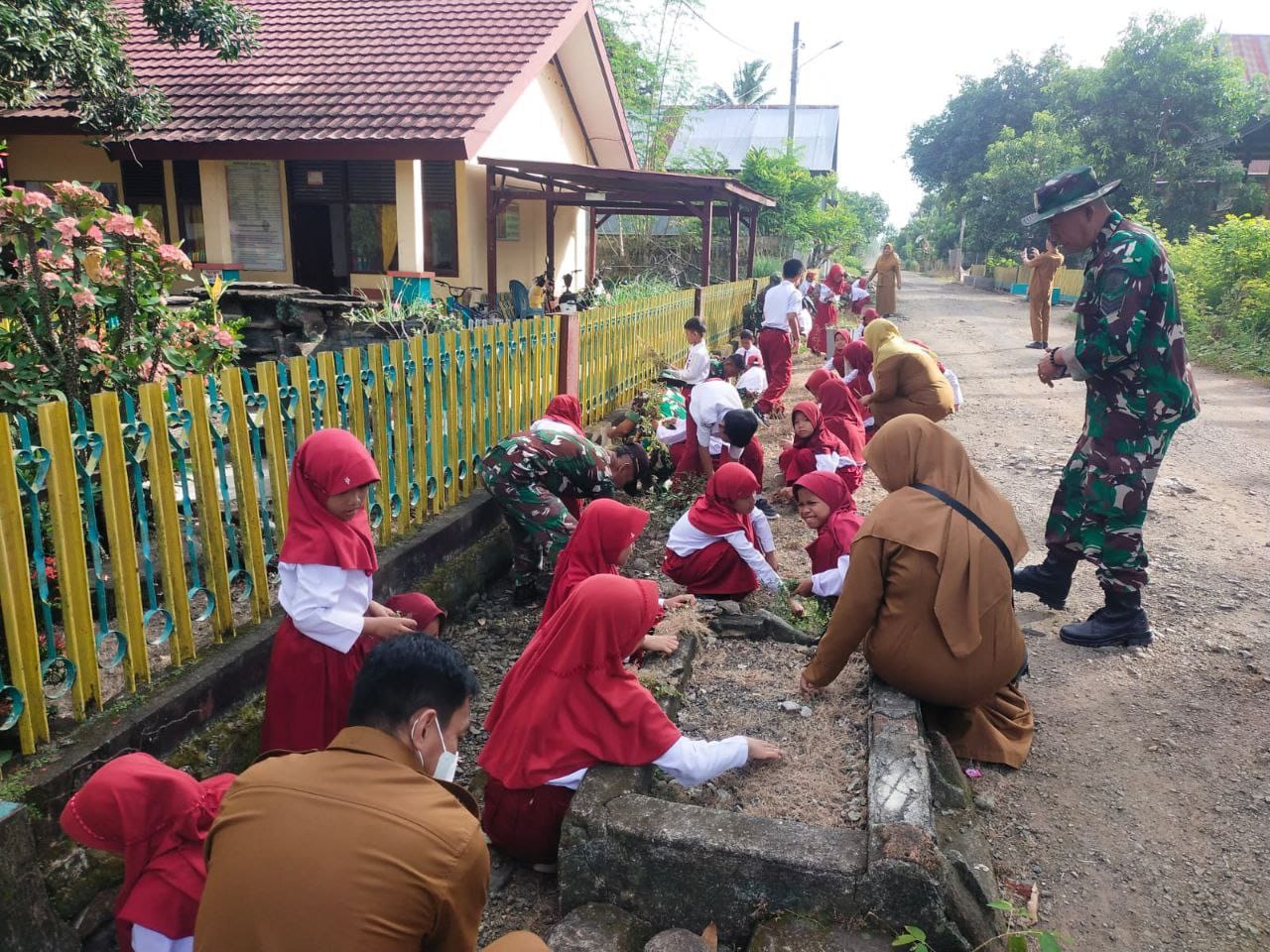 SOPPENG,- Kpksigap.com // Koramil 1423-02/Marioriawa Melaksanakan Karya Bakti Bersama Kepala sekolah,Guru dan Staf Sekolah Serta Para Murid SD 50 Tarawang Kelurahan Manorang Salo Kecamatan Marioriawa Kabupaten Soppeng