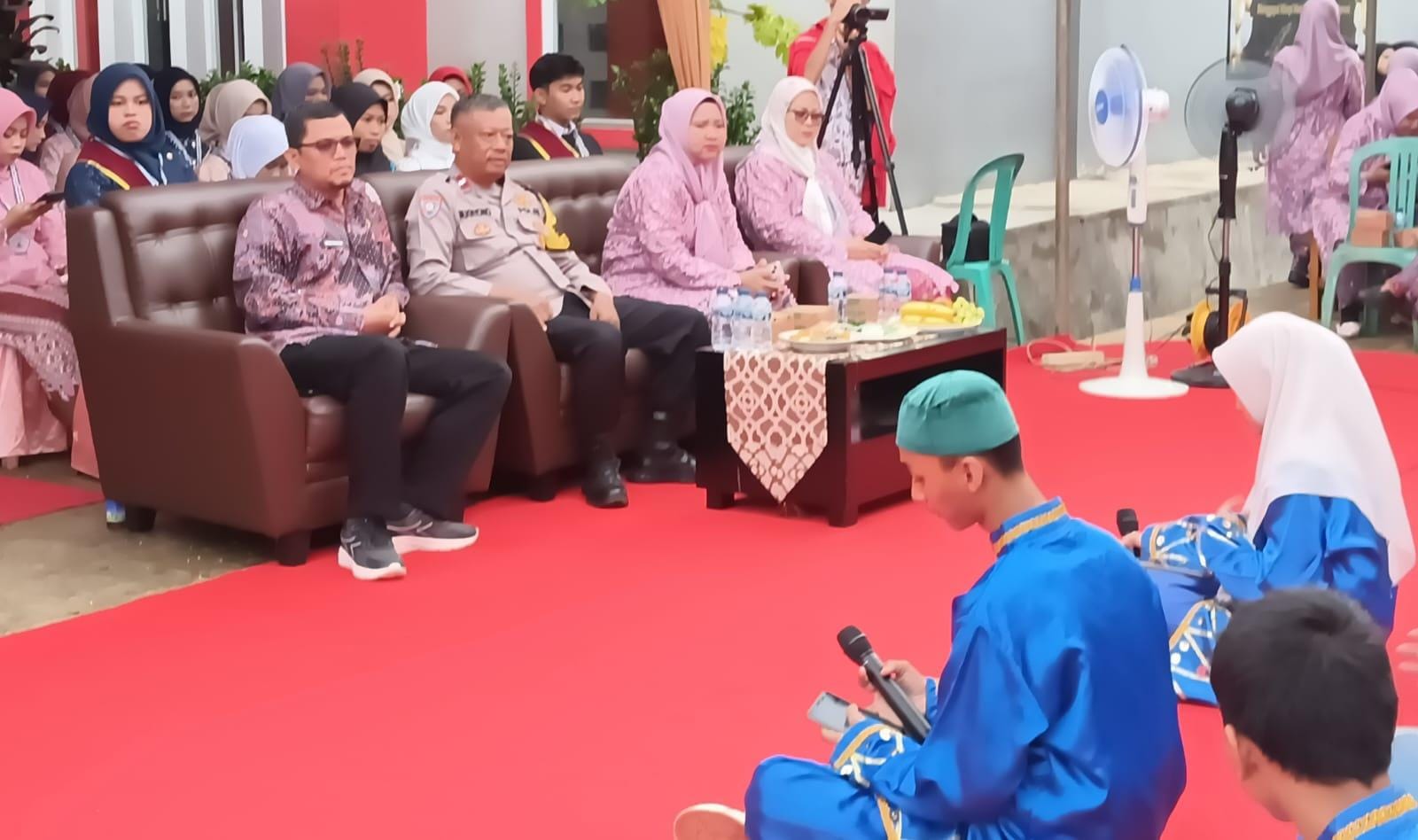 Kepala SD Negeri 1 Karang Baru, Neti Suriyah, menyampaikan apresiasi atas bantuan yang diberikan Polri.