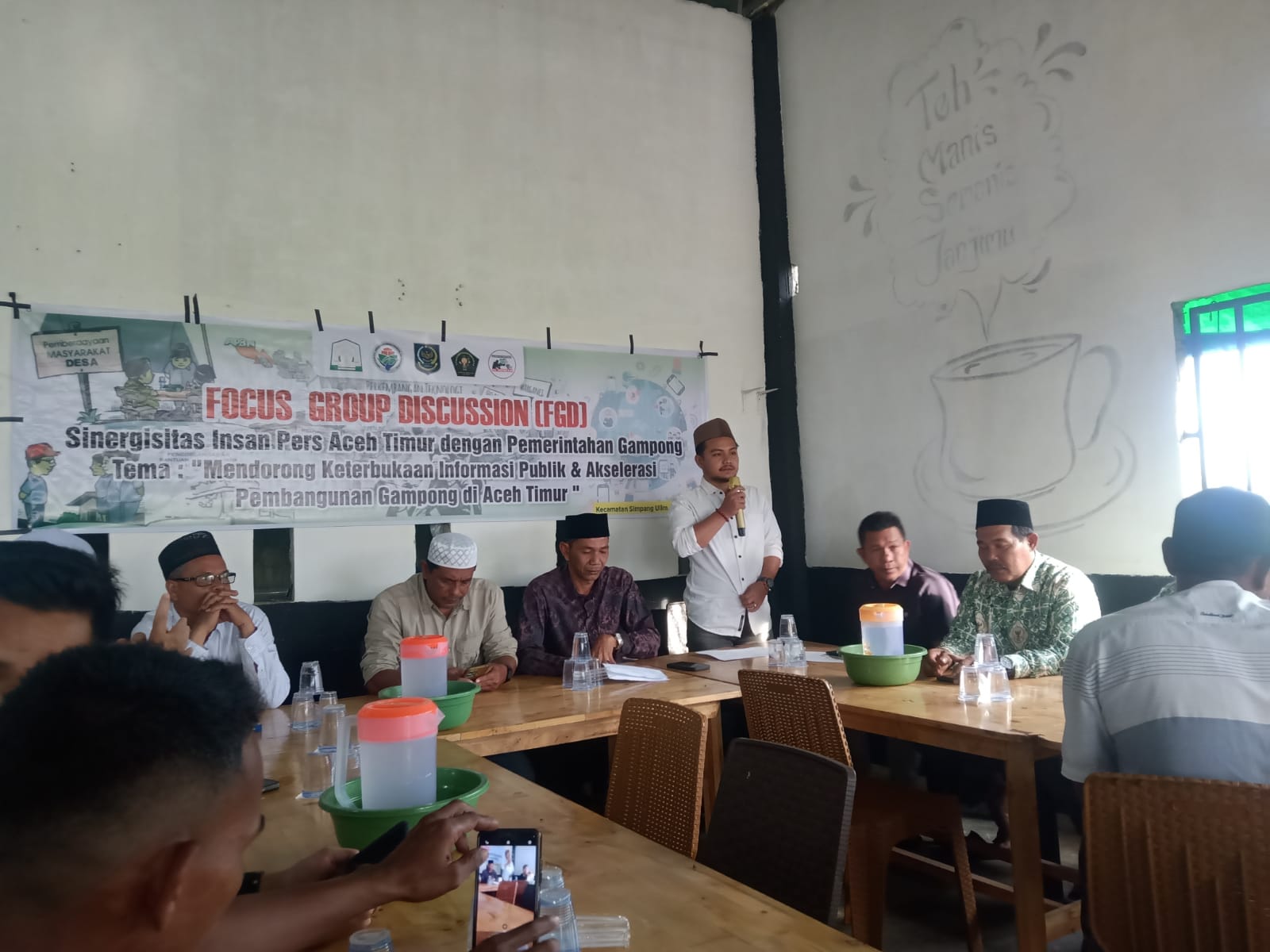 “Hujan dan badai jangan jadikan penghalang dan rintangan, yang jauh segera mendekat, yang dekat segera merapat,” kelakar Gus Eky dengan sebatang rokok terselip di jari tangannya.
