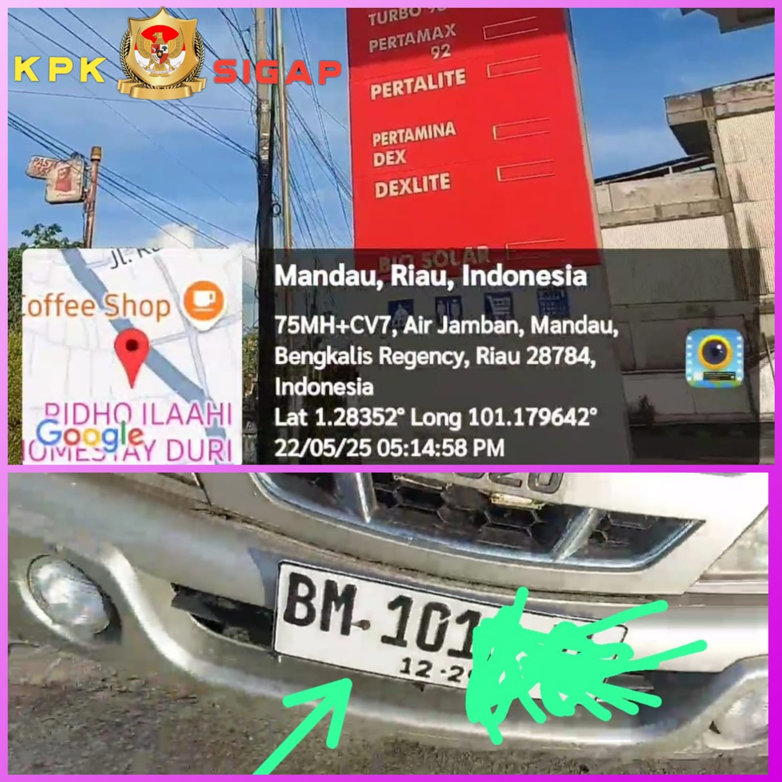 Tim investigasi awak media sempat merekam menggunakan handphone aktivitas transaksi pembelian BBM menggunakan jerigen, terlihat Kendaraan roda empat dengan plat No BM 101x Ex yang didalamnya ada beberapa jerigen 35 Liter sedang menyalin BBM subsidi jenis pertalite dari SPBU 14.287.634