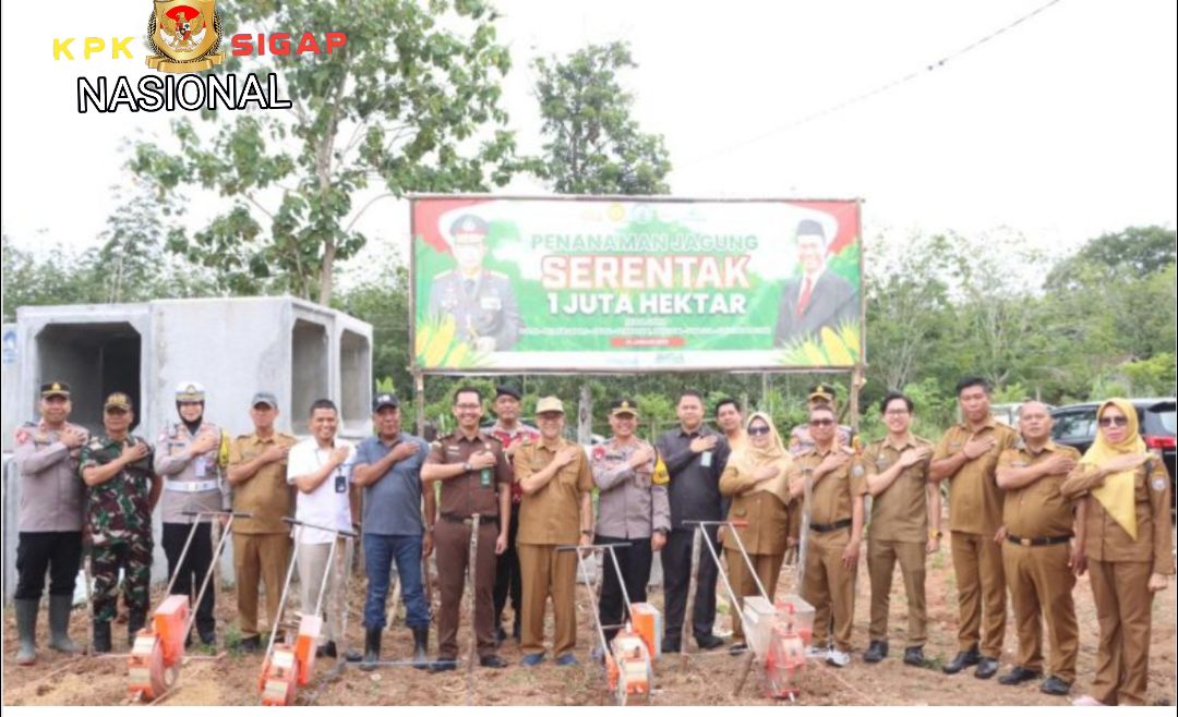 Baturaja- kpksigap.com Dalam rangka mendukung Swasembada Pangan khususnya di wilayah Kabupaten Oku, Polres Oku bersama Forkopimda Oku, Forkopimcam Sosoh Buay Rayap bersama Kepala Desa serta pemilik lahan melakukan aksi penanaman jagung serentak satu juta hektar. Selasa (21/01/2025).