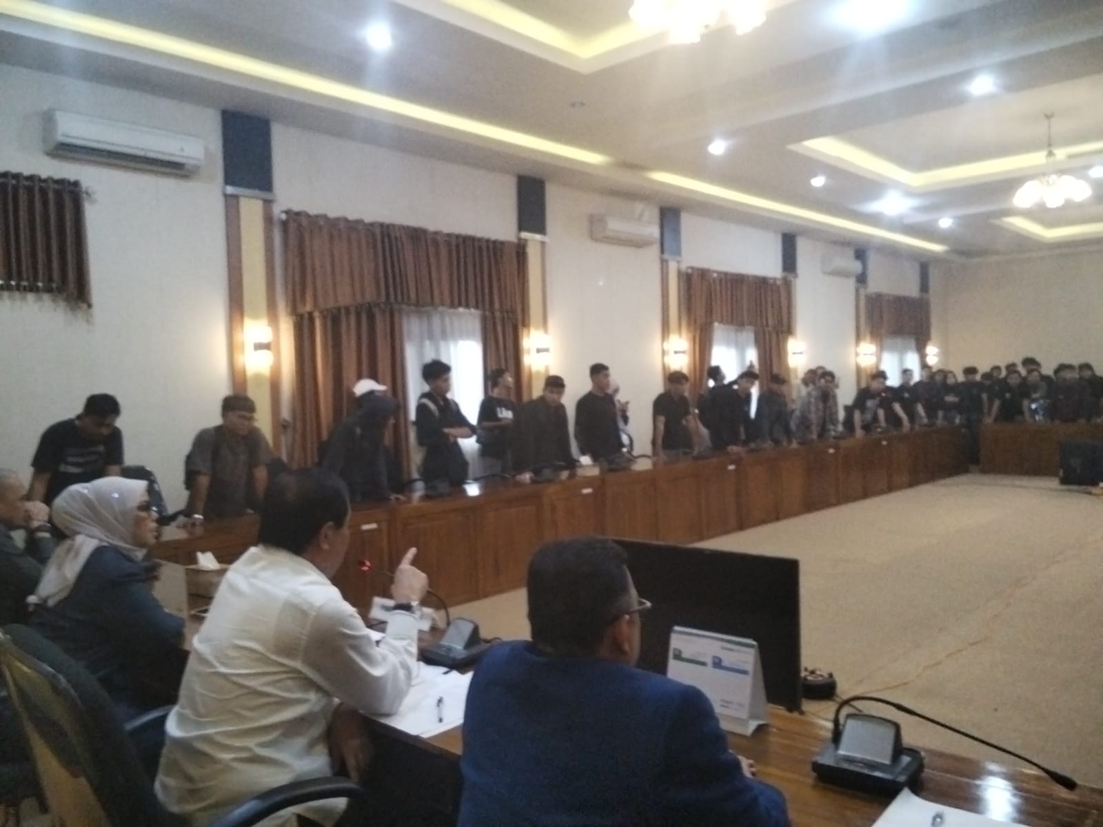 Massa sempat dipersilakan masuk ke salah satu ruangan di dalam gedung DPRD. Namun, mereka meminta dipindahkan ke ruang yang lebih luas agar seluruh peserta dapat duduk dan menyampaikan aspirasi. Setelah terjadi dorongan dan negosiasi, forum akhirnya dilaksanakan di ruang rapat paripurna, yang menjadi ruang dialog antara mahasiswa dan perwakilan dewan.