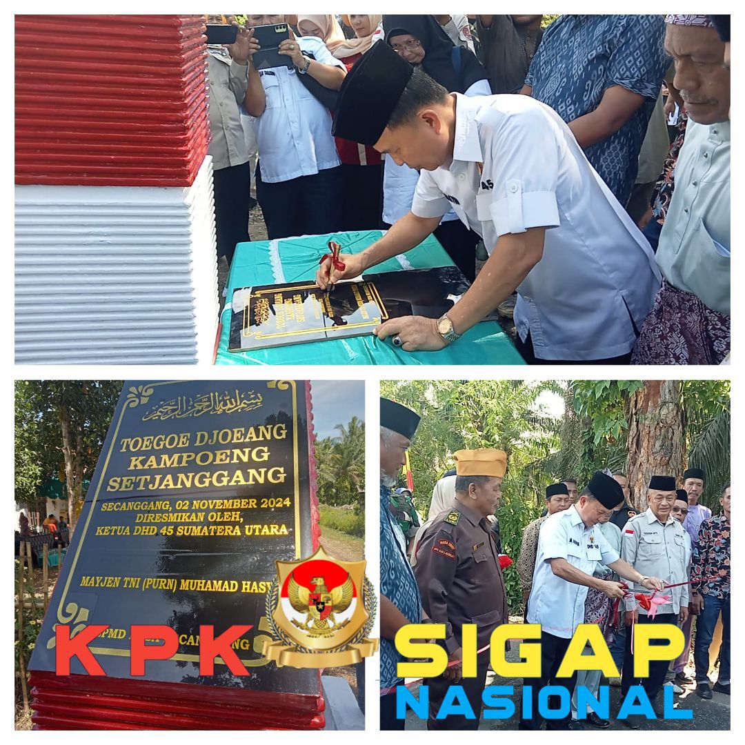 Ketua Umum DHD 45 Sumut Mayjen TNI (Purn) M.Hasyim Resmikan Monumen Tugu Perjuangan Dan Pemancangan Bendera Merah Putih Di makam Pejuang.acara yang berlangsung saat peresmian serta penandatanganan prasasti didusun tanah tinggi,sementara pemancangan Bendera merah putih dimakam pejuang yang terletak di dusun hilir desa Secanggang,kecamatan Secanggang,kabupaten Langkat pada Minggu (02/10/2029) pukul 09,00 wib s/d selesai