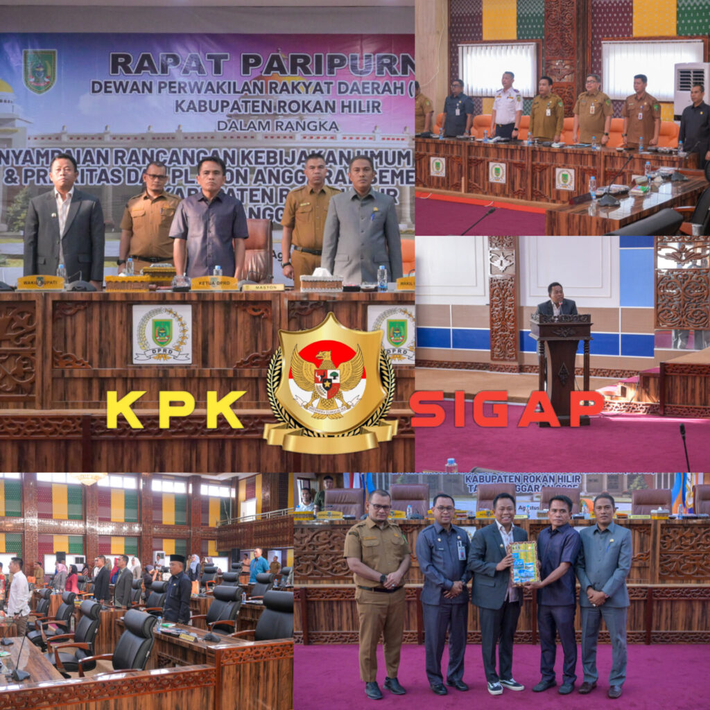 Atas nama Pemerintah Kabupaten Rokan Hilir (Rohil) melalui Wakil Bupati Rohil H. Sulaiman menyampaikan Rancangan Kebijakan Umum Anggaran (KUA) dan Prioritas Plafon Anggaran Sementara (PPAS) Kabupaten Rokan Hilir Tahun Anggaran 2025 melalui Rapat Paripurna Dewan Perwakilan Rakyat Daerah (DPRD) Rohil, Senin (26/8/2024) sore di Aula Sidang Utama DPRD Rohil, Jalan Lintas Pesisir, Batu Enam, Bagansiapiapi, Rohil Provinsi Riau. Ketua DPRD Rohil, Maston yang membuka sekaligus memimpin rapat menyampaikan bahwa Rapat Paripurna DPRD dengan agenda rapat penyampaian Rancangan KUA dan PPAS Kabupaten Rohil Tahun 2025 oleh Bupati Rohil dihadiri Wakil Bupati Rohil, 27 anggota DPRD, Sekda, Sekwan, serta para Kepala OPD dan rapat dinyatakan kuorum. “Terima kasih disampaikan kepada saudara Wakil Bupati serta kepada seluruh hadirin yang berkenan hadir memenuhi undangan Rapat Paripurna pada hari ini. Berdasarkan pengumuman yang disampaikan oleh Sekretaris DPRD, dari 45 orang anggota DPRD yang menandatangani daftar hadir sejumlah 27 orang terdiri dari seluruh unsur fraksi-fraksi. Sesuai pasal 129 ayat 1 huruf c peraturan tata tertib DPRD Kabupaten Rohil Nomor 1 Tahun 2019 kuorum sudah tercapai dan rapat sudah dapat dilaksanakan dan terbuka untuk umum,” kata Maston.
