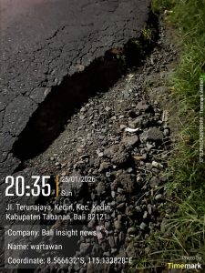 Tabanan, 29 Januari 2026 – Kondisi jalan Teruna Jaya di Kediri, Kecamatan Kediri, Kabupaten Tabanan, Bali, saat ini banyak berlubang dan rusak. Warga dan pelajar mengeluhkan infrastruktur tersebut, terutama bagian depan SMP Negeri 1 Kediri dan Banjar Delod Puri, yang semakin mengkhawatirkan karena potensi bahaya lalu lintas.