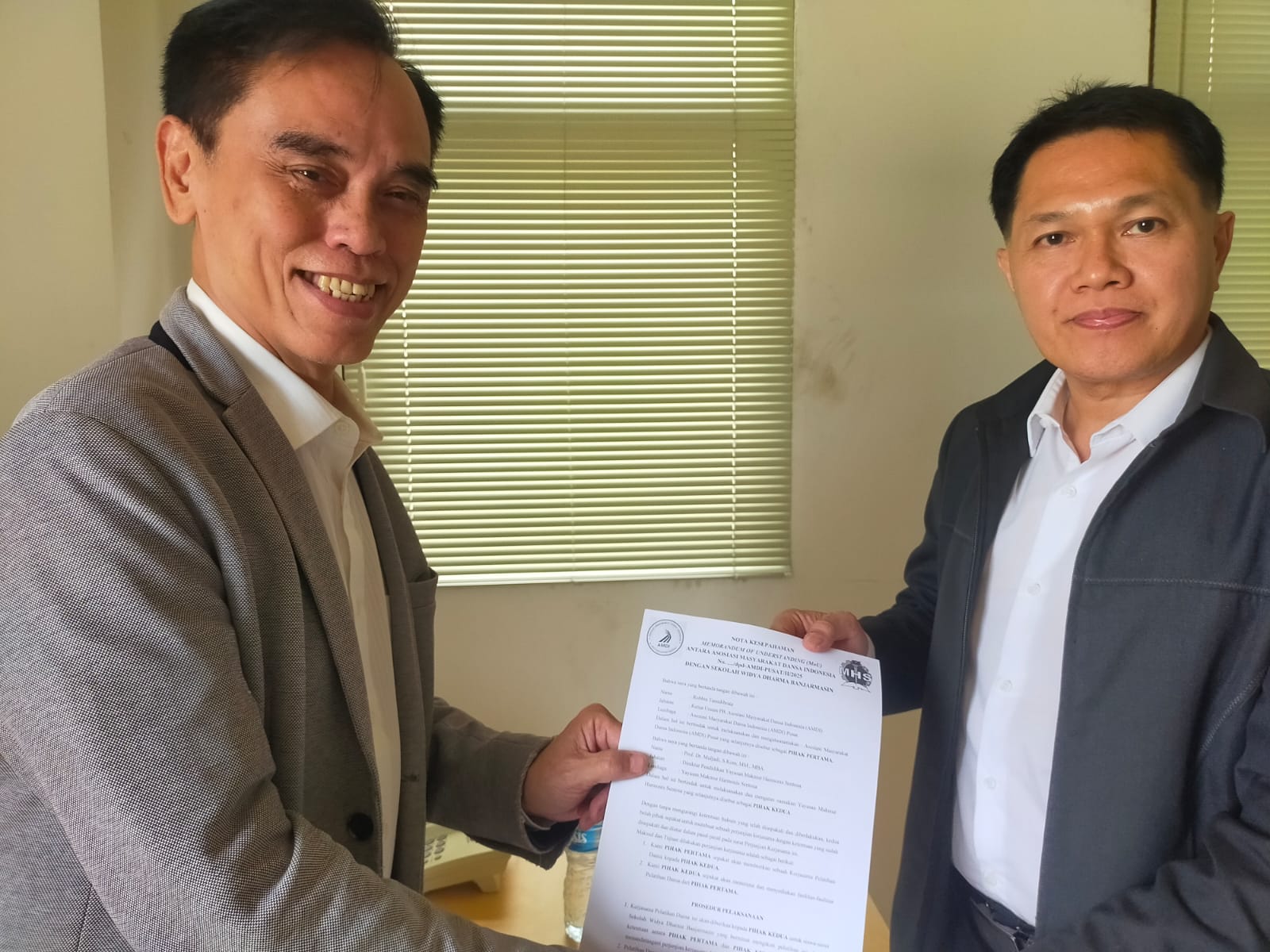 Jakarta, 20 Februari 2025 – Sekolah Widya Dharma Banjarmasin, yang berada di Kalimantan Selatan, hari ini menandatangani Memorandum of Understanding (MOU) dengan Asosiasi Media Dansa Indonesia (AMDI) yang dipimpin oleh Ketua Umum AMDI, Robin Tanudibrata.