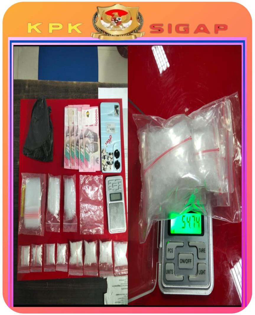 Dari tangan tersangka, polisi menyita delapan paket sabu yang dibungkus plastik klip bening dengan total berat kotor 54,74 gram. Selain itu, turut diamankan satu lembar plastik klip bening, tiga pak plastik kosong, satu kantong plastik hitam, uang tunai sebesar Rp500.000, satu unit timbangan digital, serta satu unit telepon genggam merek OPPO warna biru muda.