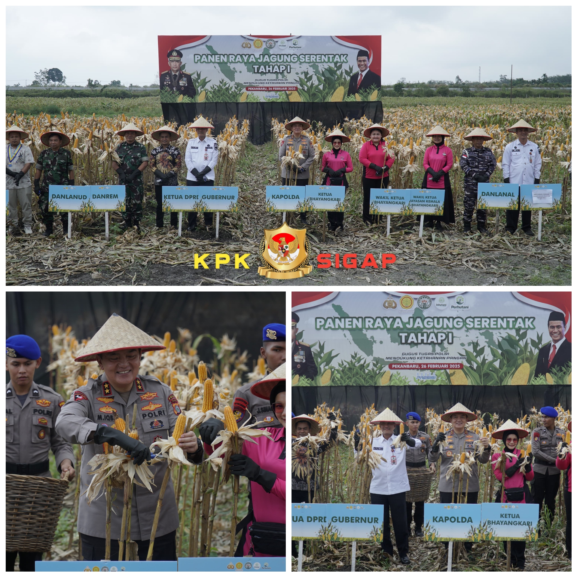 Polda Riau menggelar panen raya jagung pipil tahap pertama, di Desa Kualu Nenas, Kecamatan Tambang, Kabupaten Kampar, Riau, Rabu (26/2/2025). Panen ini digelar oleh Gugus Tugas Polri dalam rangka mendukung ketahanan pangan.