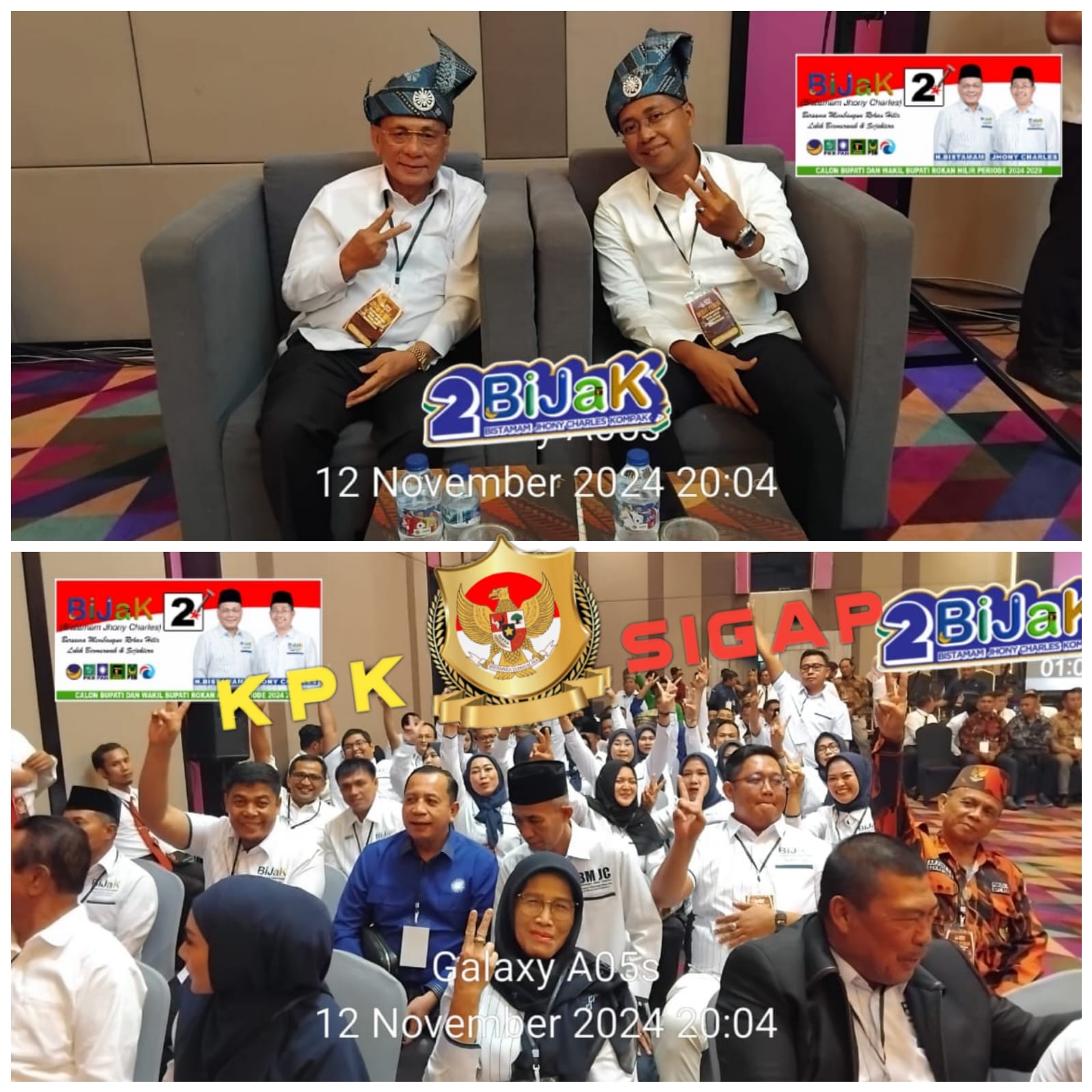 Pasangan calon Bupati dan Wakil Bupati Rokan Hilir, H. Bistamam dan Jhony Charles, disambut meriah saat memasuki ballroom Hotel The Zuri di Kompleks Transmart, Jalan Soekarno – Hatta, Kota Pekanbaru. Kehadiran mereka dalam debat publik yang ditaja oleh Komisi Pemilihan Umum Kabupaten Rokan Hilir ini menarik perhatian masyarakat dan pendukung yang antusias menyaksikan langsung pasangan calon tersebut.